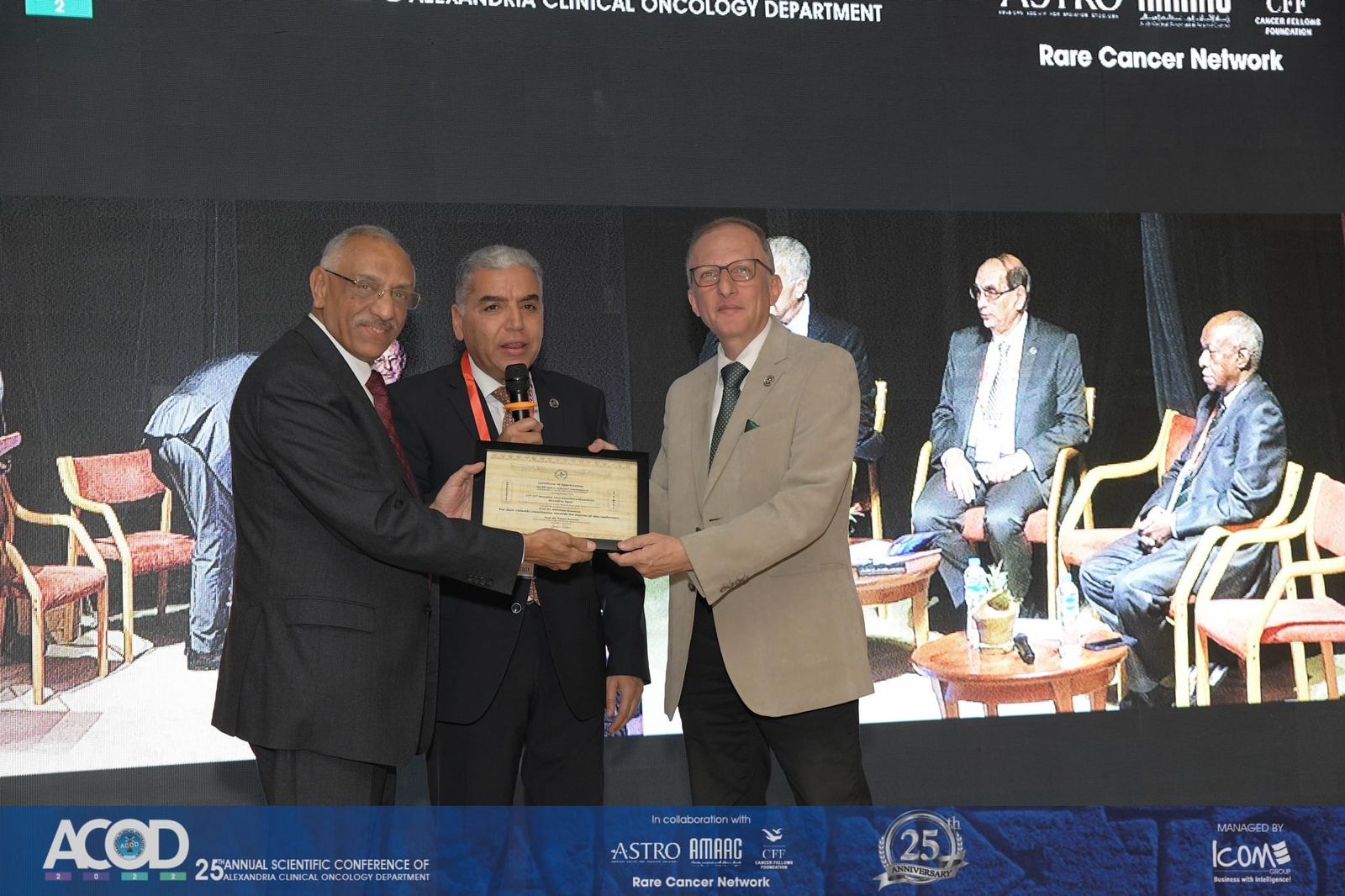 وشارك فى الاحتفالية وفد الجمعية الأمريكية للعلاج الإشعاعي بصحبة الدكتور تامر رفعت رئيس قسم العلاج الإشعاعي بجامعة ليولا بشيكاغو، وأساتذة متخصصون من "أمريكا وكندا وفرنسا وإيطاليا وألمانيا والسويد وإنجلترا والسعودية والأردن ولبنان والعراق والسودان"، إلى جانب الخبراء المصريين من مختلف الجامعات المصرية، ولفيف كبير من المتخصصين والمعنيين بعلاج الأورام في مصر والشرق الأوسط وإفريقيا.