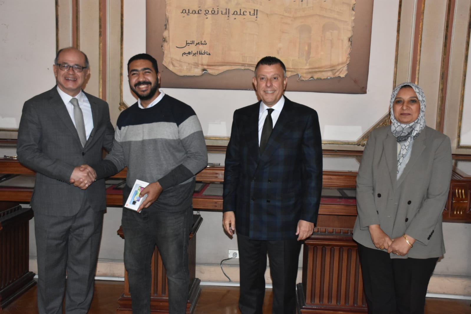 وكرم رئيس جامعة عين شمس، الطلاب وهم ماريا جورچ كلية حقوق الفرقة الثالثة، وعبدالرحمن أحمد كلية الآداب، ومحمد أحمد محمد كلية الحقوق، ونادر أيمن كلية الزراعة، وعمرو عصام كامل إدارة التربية العسكرية بالجامعة.