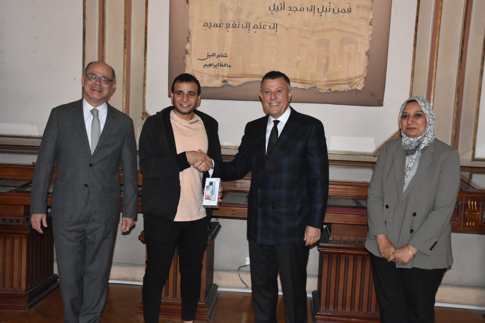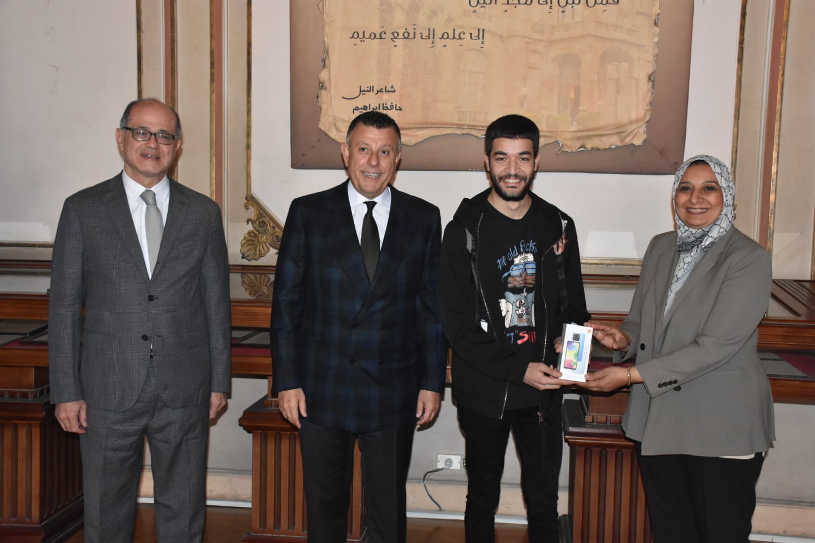 رئيس جامعة عين شمس يكرم الطلاب الفائزين في مسابقة ندوة مصر الرقمية