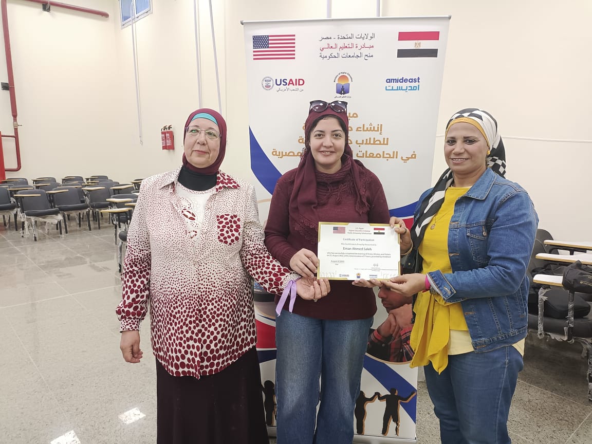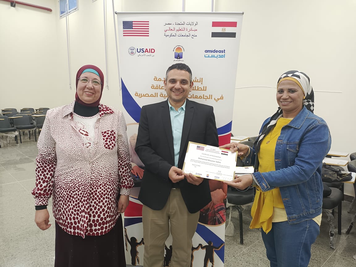 ومن جانبها أكدت مديرة مركز دعم خدمة طلاب ذوي الإعاقة الدكتورة عزة العمري، أنه يعتبر منح النموذج المستخدم لمراكز خدمة الطلاب ذوي الهمم المصمم من قبل أمديست بمثابة وحدة خدمية تتواصل مع الجامعة بأكملها، لزيادة الوعي بأنشطة الدمج، والتدريب على بناء الكوادر، ويعتبر إنشاء تلك المراكز ضمن برنامج منح الجامعات الحكومية الخاصة بمبادرة التعليم العالي (الأمريكية - المصرية).