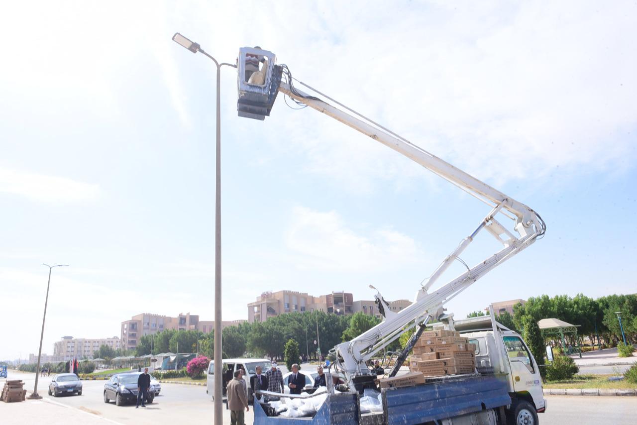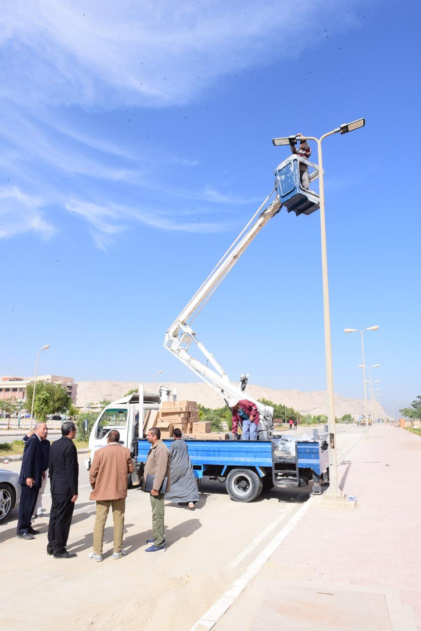 جامعة سوهاج ترفع مستوى الإنارة بمقرها الجديد بتركيب 1400 كشاف موفر للطاقة