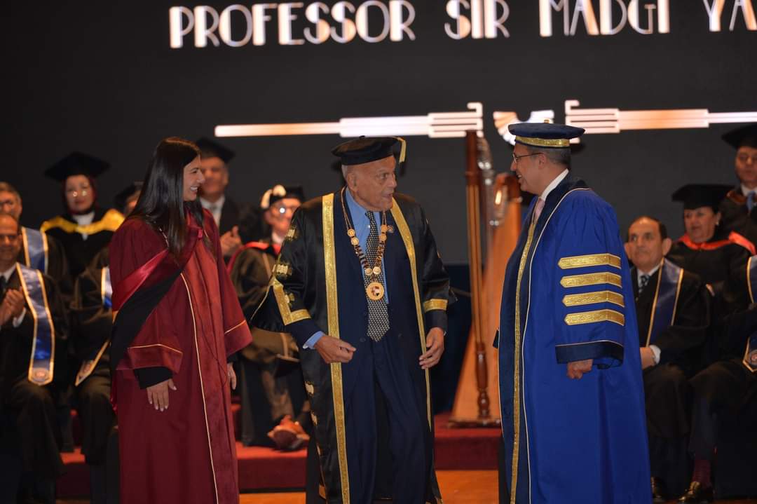 من جانبه قال الدكتور محمد لطفي، رئيس الجامعة البريطانية في مصر، إنه يومًا تاريخي نكرم فيه الجراح العالمي مجدي يعقوب والذي كان له تأثيره الفريد على العالم من حولنا، فهو من أشهر المصريين الذين يرفعون اسم مصر حول العالم، وتاريخه حافل، وعبقريته غير مسبوقة، وساهم في إنقاذ أرواح العديد من الأطفال في العالم، والجميع يعلم أن لهذا الاسم صدى كبير في جميع أنحاء العالم، بكل ما تعنيه الكلمة، وانطلاقًا من تمحور الجامعة البريطانية حول الطالب، سيدعم وجود السير مجدي يعقوب هذا الهدف، وسيتيح للطلاب أن يقولوا نحن ملتزمون بمجتمعنا ونؤمن بالإنسانية.