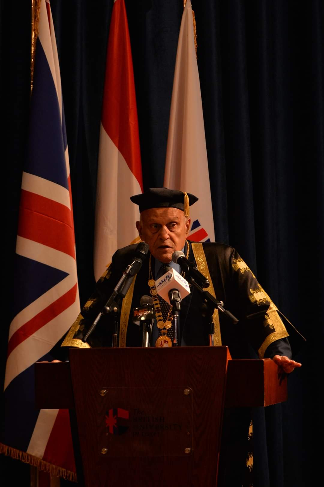 شهدت فريدة خميس رئيس مجلس أمناء الجامعة البريطانية في مصر، والدكتور محمد لطفي رئيس الجامعة، مراسم حفل تنصيب الجراح العالمي الكبير السير مجدي يعقوب، كأول رئيسًا شرفيًا "Chancellor" للجامعة البريطانية في مصر.