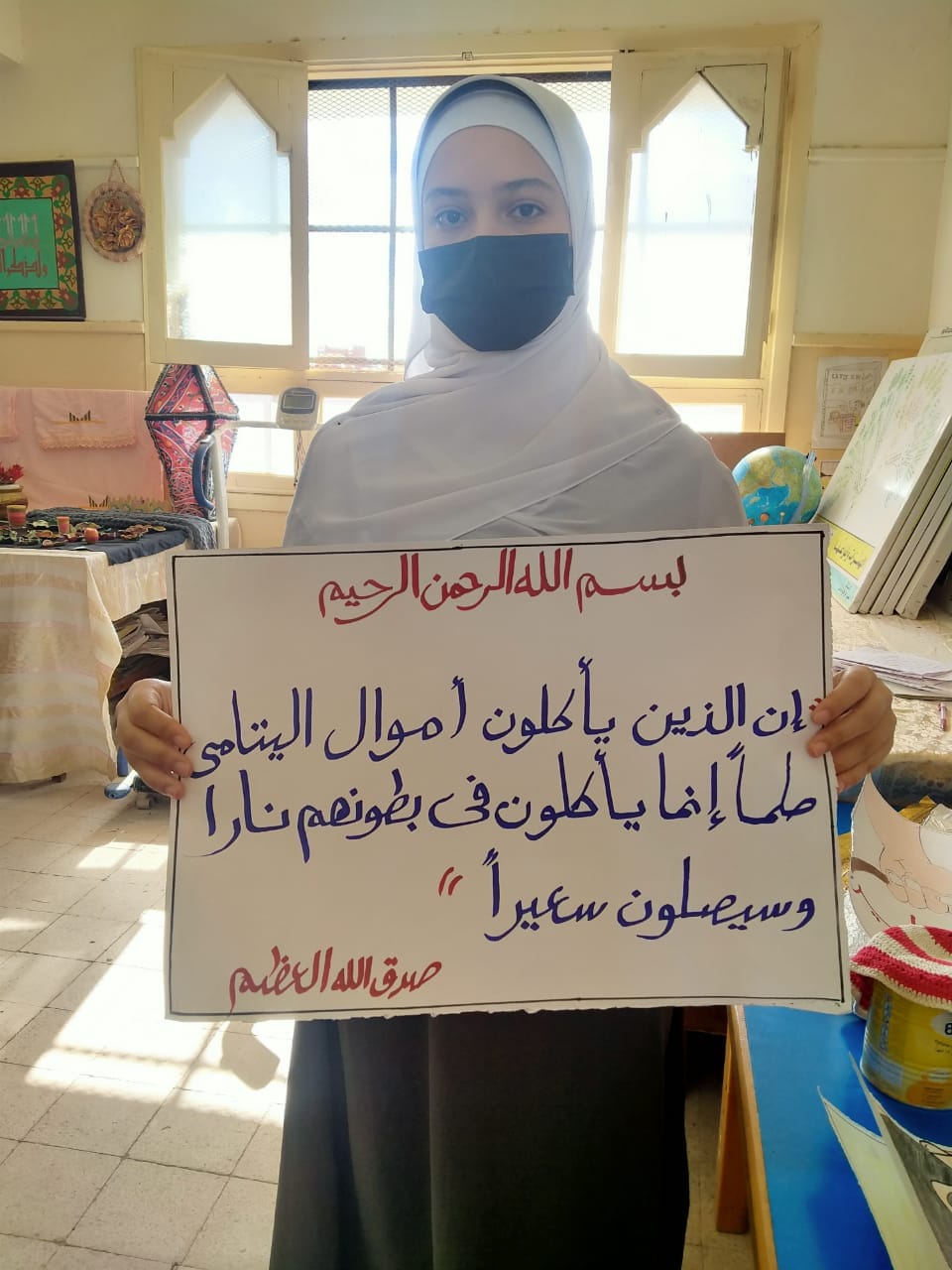 قدمن فتيات بمنطقة مطروح الأزهرية، لوحات إرشادية للتوعية بأضرار العنف ضد المرأة وذلك ضمن الحملات التوعوية التي تقودها إدارة المعاهد الأزهرية في كافة المعاهد على مستوي الجمهورية.