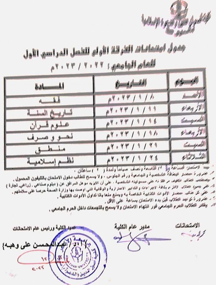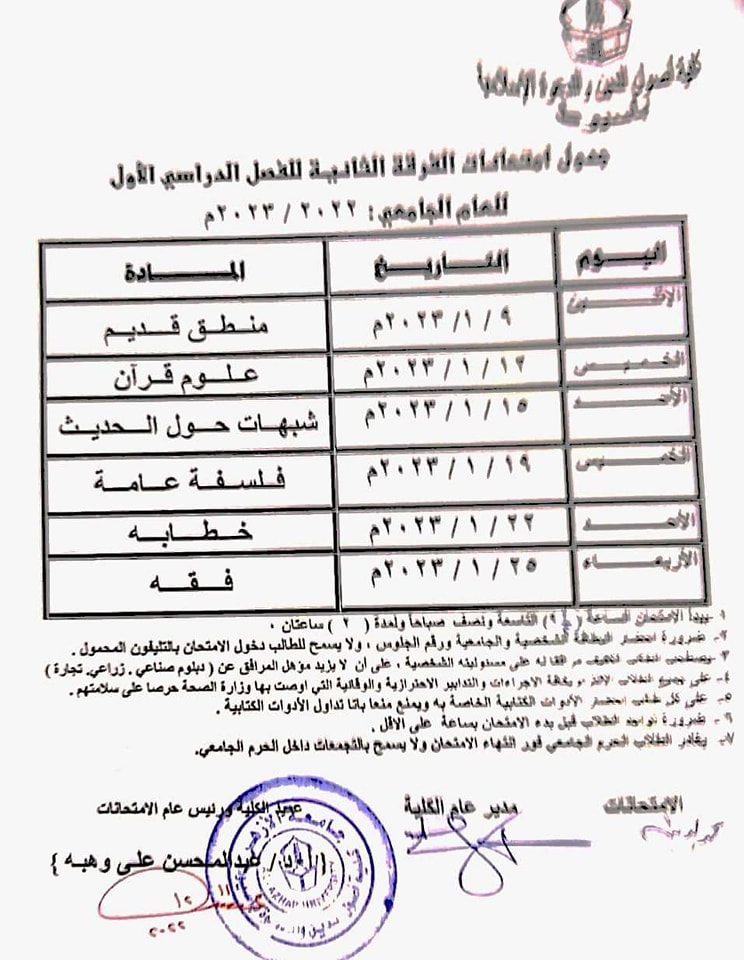 جداول امتحانات أصول الدين أسيوط الفصل الأول 2023
