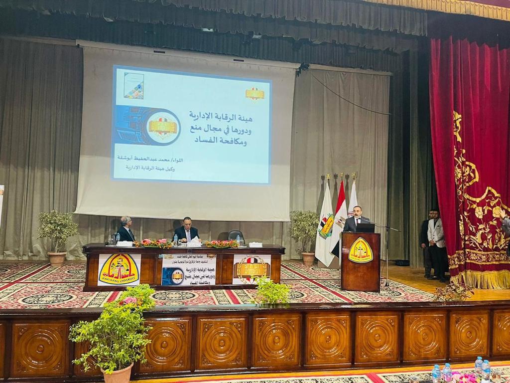 استضافت جامعة الزقازيق الندوة التوعوية التي تقيمها هيئة الرقابة الإدارية بمناسبة اليوم العالمي لمكافحة الفساد بعنوان: "هيئة الرقابة الإدارية ودورها في مجال منع ومكافحة الفساد"، تحت رعاية الدكتور خالد الدرندلي رئيس الجامعة، والدكتور ممدوح غراب محافظ الشرقية، واللواء محمد عبد الحفيظ أبو شقة وكيل هيئة الرقابة الإدارية ورئيس مكتب هيئة الرقابة الإدارية بالشرقية، بحضور نواب رئيس الجامعة، ونواب محافظ الشرقية، وممثل هيئة الرقابة الإدارية بالشرقية، وعمداء ووكلاء الكليات وأعضاء هيئة التدريس والهيئة المعاونة، وأمين عام الجامعة، والأمناء المساعدين ومديري الإدارات بالجامعة والكليات ومجالس اتحاد الطلاب.