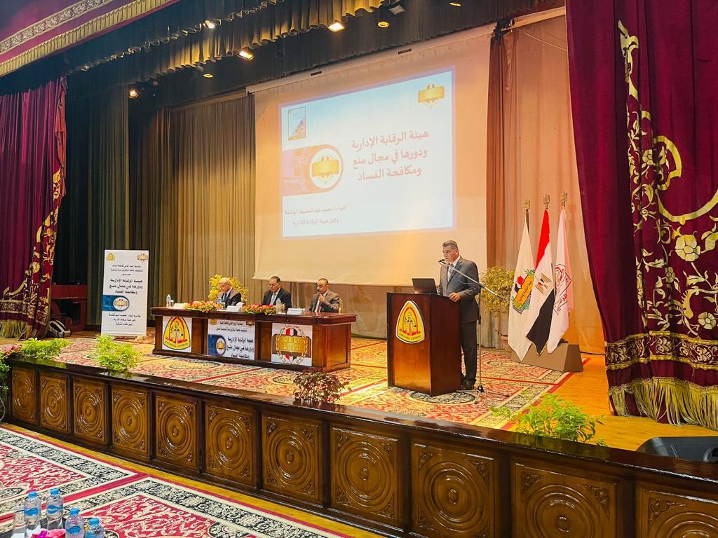 وفي خلال المحاضرة التي ألقاها اللواء محمد عبد الحفيظ أبو شقة وكيل هيئة الرقابة الإدارية، تم عرض تقديمي لتوضيح دور الهيئة والأهداف الاستراتيجية والخطط التي تنفذها في محاربة الفساد، موضحًا أن الهيئة هى هيئة رقابية مستقلة تتبع رئيس الجمهورية وتتمتع بالاستقلال الفني والإداري والمالي، كما تم استعراض دور الدولة المصرية التي حولت مكافحة الفساد من شعارات إلى أفعال ملموسة علي أرض الواقع بتطبيق القانون علي الفاسدين، كذلك تم التعريف بالجهات التي تعمل علي مكافحة الفساد ودور الهيئات الرقابية بالدولة طبقًا للدستور، كما تم الحديث عن مسئوليات الهيئة والمحاور الرئيسية للعمل وأبرز الجرائم التي تختص بها هيئة الرقابة الإدارية كما تم تعريف الفساد وانواعه وأن إساءة استخدام السلطة أحد أنواع الفساد.