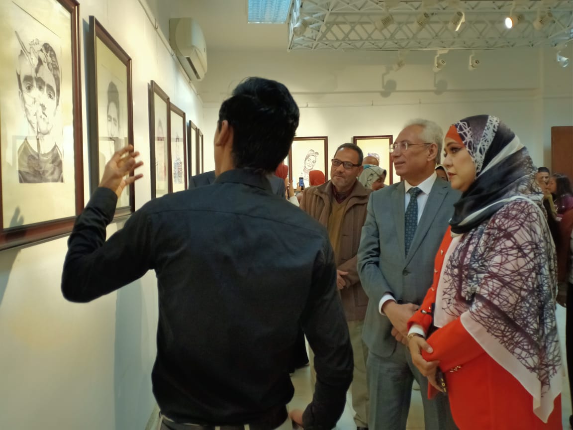 طلاب تربية فنية جامعة المنيا يبدعون في معرض فني بعنوان "ضد العنف"