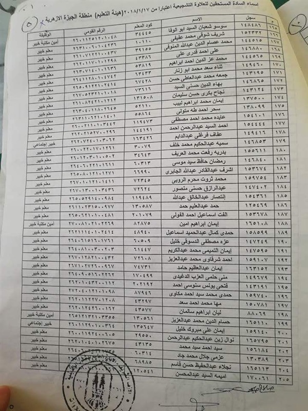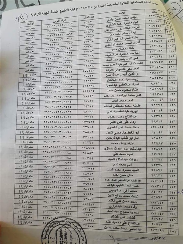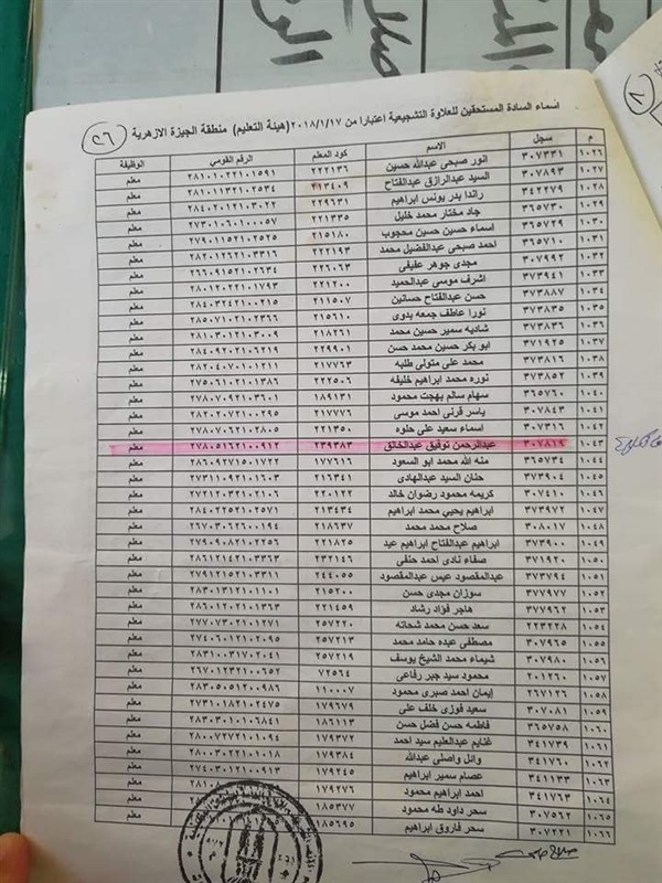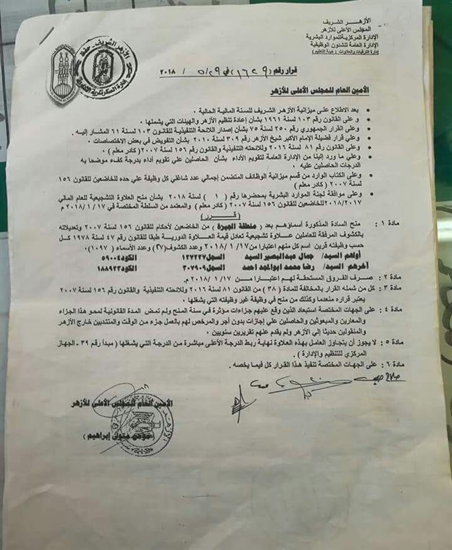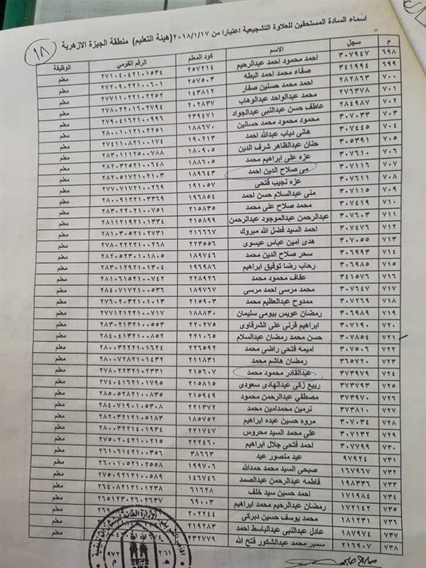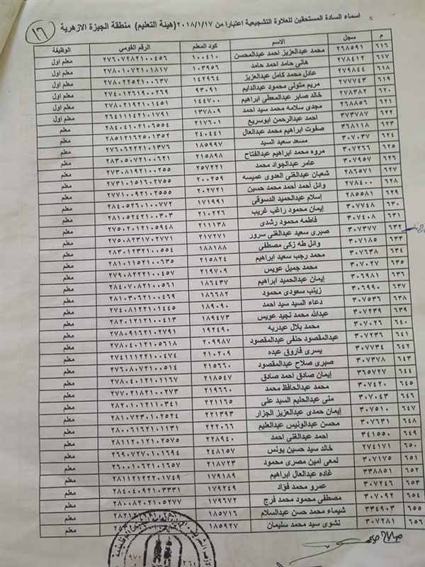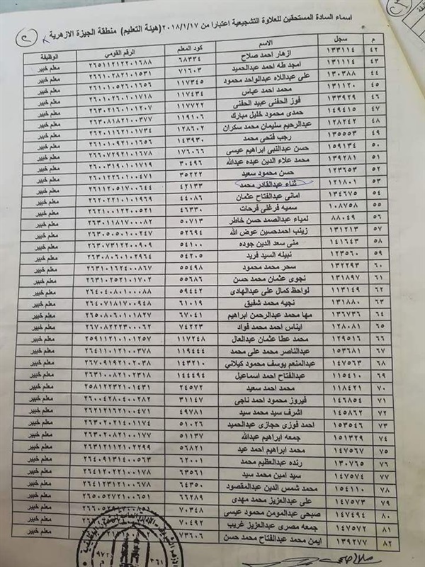 ننشر أسماء المعلمين المستحقين للعلاوة التشجيعية في "الجيزة الأزهرية"