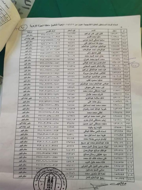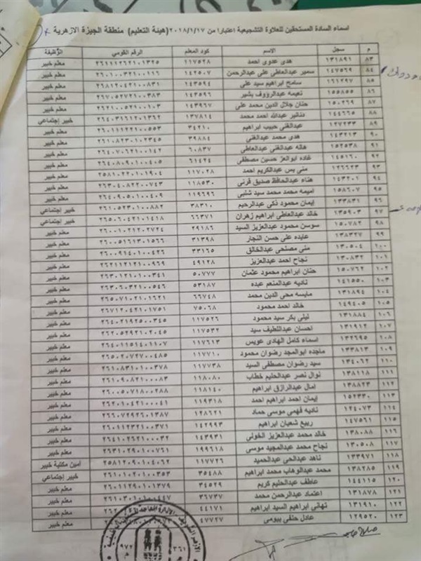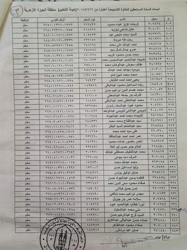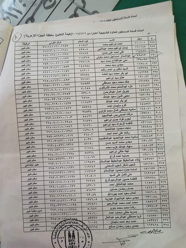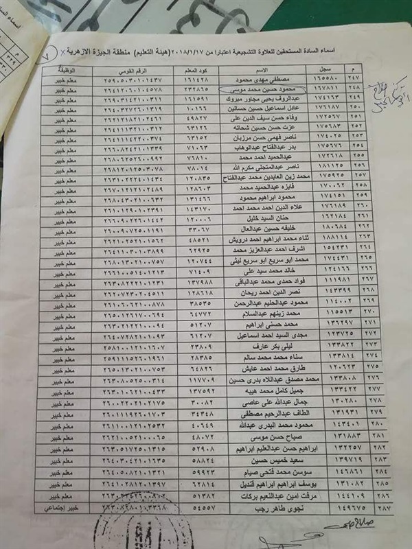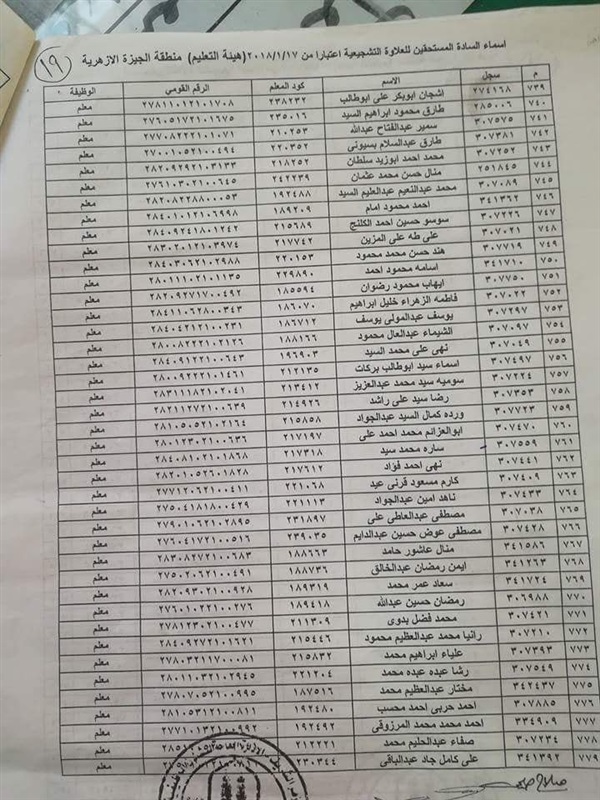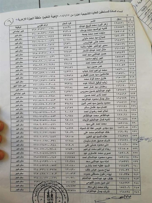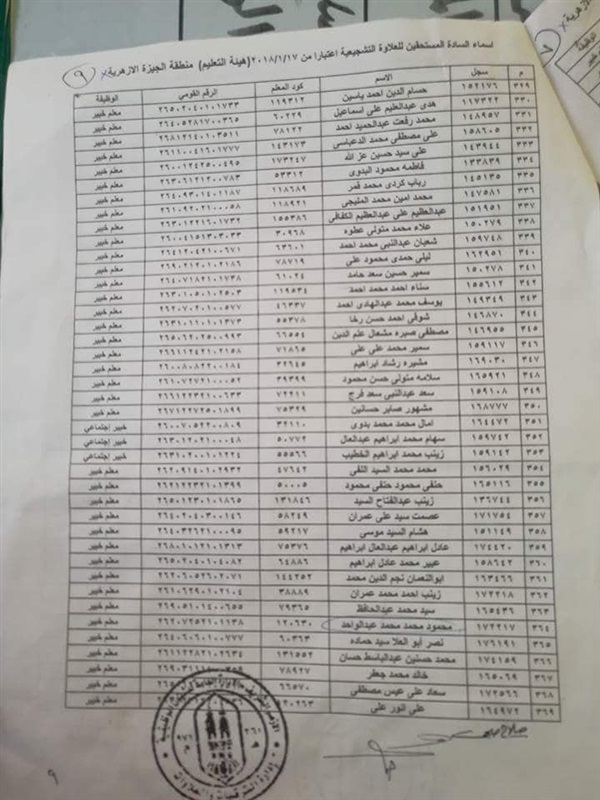 ننشر أسماء المعلمين المستحقين للعلاوة التشجيعية في "الجيزة الأزهرية"