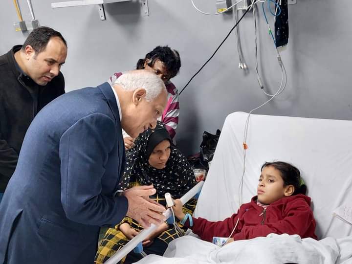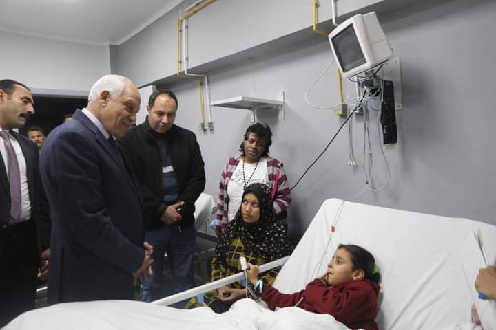 محافظ الجيزة يزور مصابي التدافع بمدرسة الشهيد أحمد جمال بالعمرانية بالمستشفيات