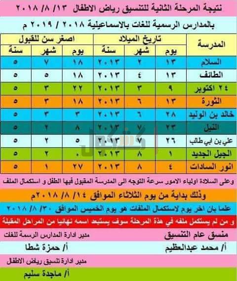 ننشر نتيجة تنسيق المرحلة الثانية لرياض الأطفال بالإسماعيلية