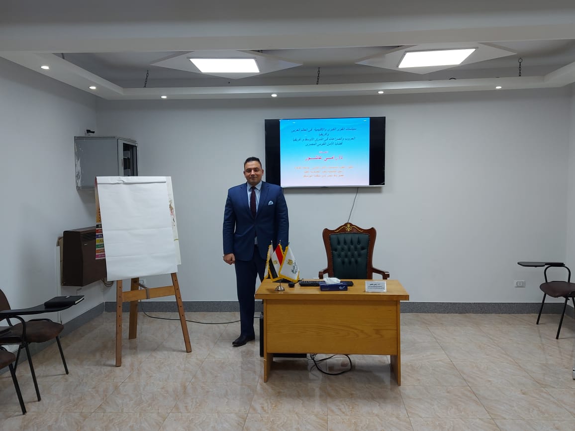 وعلى صعيد أخر انطلقت محاضرة التوعية بأسس الأمن القومي متحدثا فيها الدكتور رامي عاشور دكتور العلوم السياسية والأمن القومي زميل أكاديمية ناصر العسكرية العليا، عن سياسات القوى الكبرى والإقليمية في العالم العربي وارتباط التنمية والأمن بالأمن القومي وتقدم الدول ومؤسساتها، وكذلك الحروب والصراعات في الشرق الأوسط وإفريقيا، وتطرق إلى تحديات تحقيق التنمية في المجتمعات وتهديدات الأمن القومي، موضحا أوجه ارتباط الأمن القومي العربي بالأمن القومي المصري.