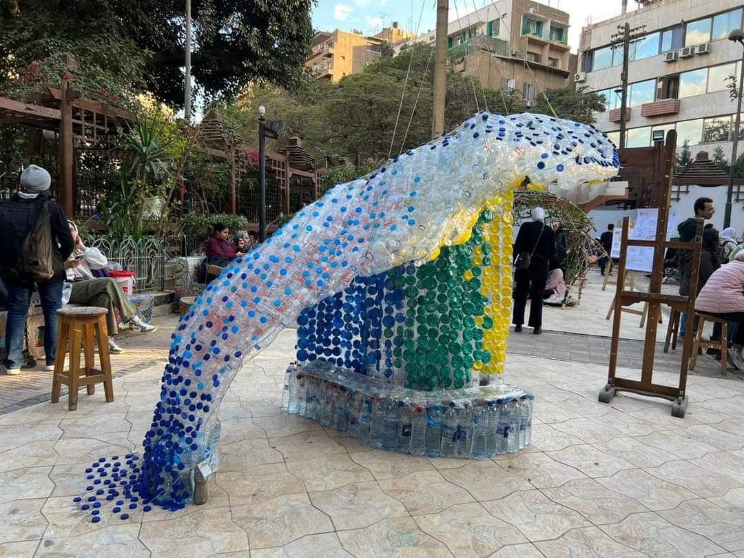 - التجربة الإنشائية بعمل إعادة تدوير للزجاجات والماكت على شكل موجة البحر للتوعية بخطر البلاستيك على البحار والمحيطات.