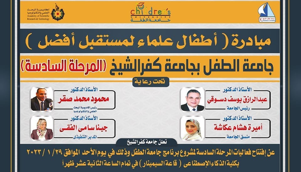 وقال رئيس جامعة كفرالشيخ، إن جامعة الطفل هو مشروع قومي تتبناه أكاديمية البحث العلمي والتكنولوجيا، في مجال التعليم الإبداعي غير الرسمي للعلوم واكتشاف واحتضان الأطفال المميزين في مراحل مبكرة من التعليم، وهو واحد من برامج التعليم الإبداعي التي تنتجها الأكاديمية لجميع الطلاب بالمجان وبشراكة ناجحة مع الجامعات المصرية الحكومية والأهلية والخاصة.