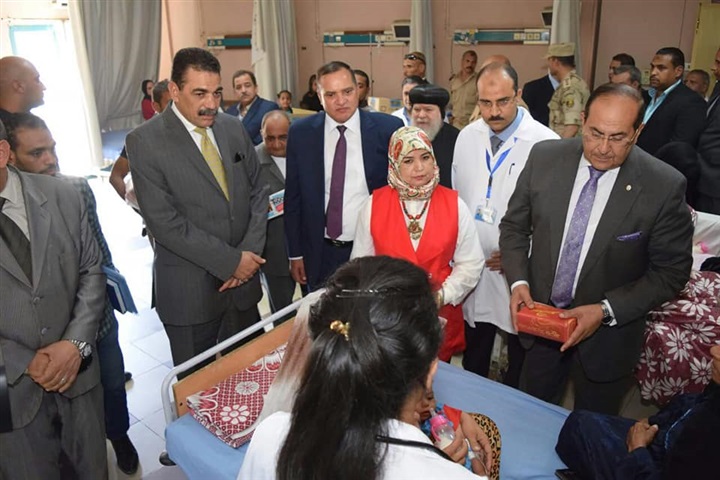 زار اليوم الدكتور أيمن عبد المنعم محافظ سوهاج، والدكتور أحمد عزيز رئيس الجامعة، واللواء هشام الشافعي مدير الأمن مرضي مستشفي الهلال للتأمين الصحي بالمحافظة بمناسبة عيد الأضحي المبارك، حيث قاموا بتوزيع الهدايا والاطمئنان المرضي المتواجدين لتلقي العلاج، وذلك برفقة الدكتورة رجاء حسين وكيل وزارة الصحة بالمحافظة.