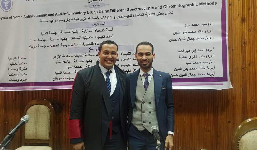 وأضاف الدكتور علام عبدالمنعم القائم بأعمال عميد كلية الصيدلة جامعة سوهاج، أن الرسالة تناولت استحداث الطرق الأولى باستخدام مقياس الطيف الضوئي وطرق الفصل الكروماتوجرافي السائل عالي الكفاءة، بالإضافة إلى مقياس الطيف اللصفي، وذلك أجل التحديد المتزامن لمخاليط جديدة تحتوي على عقاقير مضادة للهيستامين وهم الكفتادين وأولوباتادين هيدروكلوريك وبيلاستين، إلى جانب عقار كيترولاك المضاد للالتهابات أو مونتيلوكاست الصوديوم، مشيرًا إلى أنه تبين من مناقشة الباحث وفحص الرسالة بأنه علي دراية تامة بتجارب البحث وله القدرة على استنباط النتائج منها.