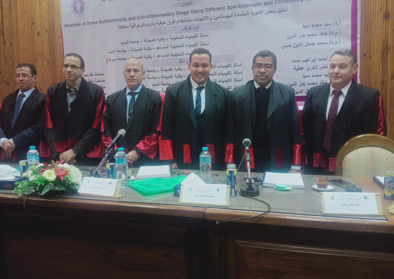 الجدير بالذكر أن لجنة الإشراف والحكم على الرسالة ضمت كلًا من الدكتور أحمد إبراهيم أحمد أستاذ الكيمياء التحليلية المساعد بكلية الصيدلة جامعة الأزهر (ممتحنًا خارجيًا)، والدكتور تامر ذكري عطية أستاذ الكيمياء التحليلية المساعد بكلية الصيدلة جامعة المنيا (ممتحنًا داخليًا)، والدكتور سيد محمد دريع أستاذ الكيمياء التحليلية بكلية الصيدلة جامعة المنيا (مشرفًا وممتحنًا)، والدكتور خالد محمد بدر الدين أستاذ الكيمياء التحليلية المساعد بكلية الصيدلة جامعة المنيا (مشرفًا وممتحنًا)، والدكتور محمد جمال الدين أستاذ الكيمياء التحليلية المساعد بكلية الصيدلة جامعة سوهاج (مشرفًا وممتحنًا).