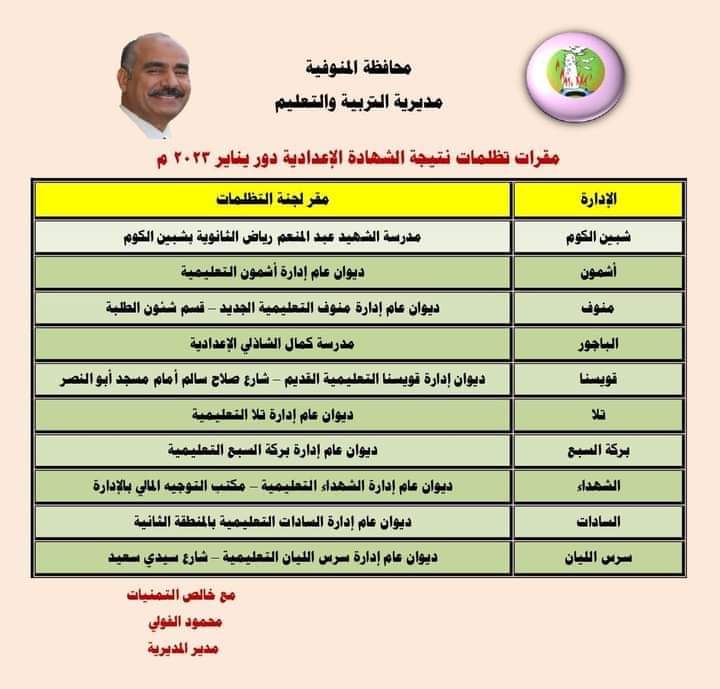 ووجهت المديرية راغبي التقدم بتظلمات من نتيجة الشهادة الإعدادية للفصل الدراسي الأول بمحافظة المنوفية اتباع التعليمات الآتية: