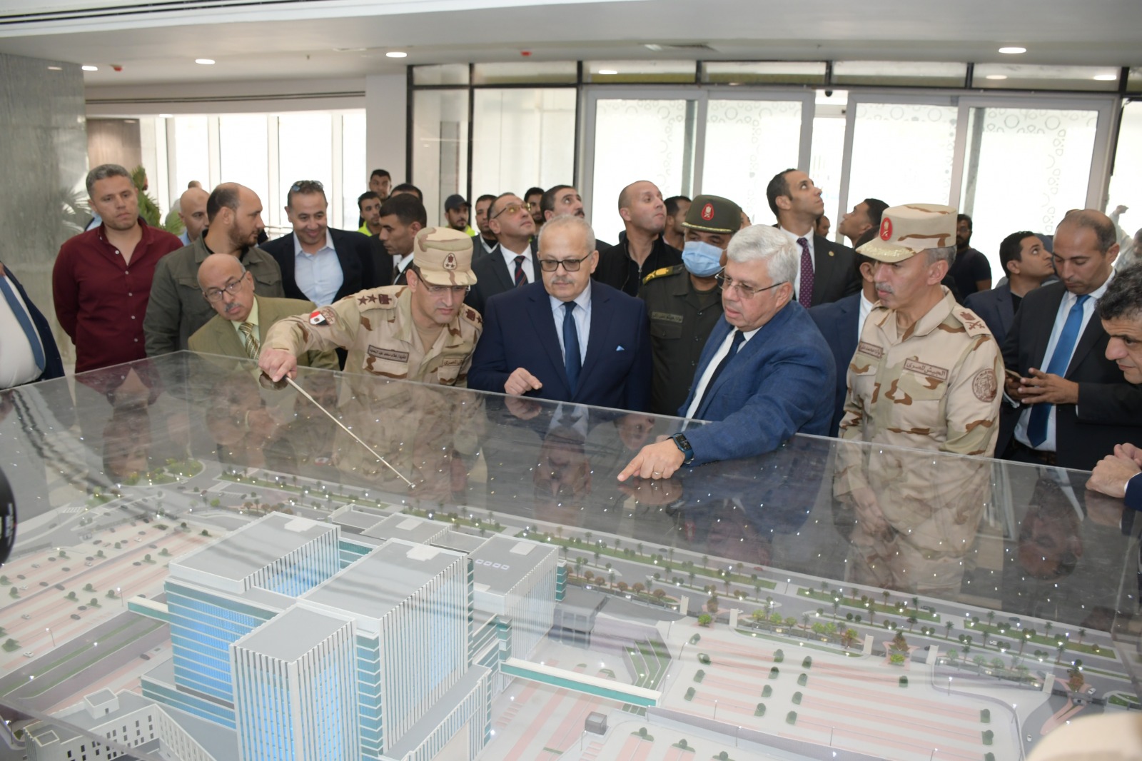 وتناول التقرير، متابعة تطور الأعمال في المشروعات الإنشائية الكبرى، أهمها المستشفيات الجامعية والتي تضمنت جولة وزير التعليم العالي والبحث العلمي الدكتور أيمن عاشور، والدكتور محمد عثمان الخشت رئيس جامعة القاهرة، إنشاءات مستشفى 500500 تمهيدًا للافتتاح القريب والتشغيل الجزئي، حيث بلغت نسبة الإنجاز الفعلي للمرحلة الأولى بها الانتهاء من 95% من الأعمال الإنشائية بمبنى العيادات الخارجية وأعمال التشطيبات، ونسبة 100% للأعمال الكهروميكانيكية، والتعاقد على عدد من بنود التجهيزات الطبية والفرش، والعمل على إنهاء مبنى إقامة المرضى، وأعمال مد خطوط ربط الكهرباء على مسارين، والانتهاء من التعاقدات اللازمة للتشغيل المبدئي واتمام اعتماد الهيكل الطبي والإداري الجديد، بالإضافة إلى الانتهاء من إحلال وتجديد محطة كهرباء مستشفى أبو الريش الياباني بالكامل، وبدء تشغيل جهاز المعجل الخطي بمستشفى أورام الثدي، كما وصلت الأعمال الإنشائية بمسرح دولت أبيض إلى مراحل متقدمة وبلغت نسبة الإنجاز 75% وجاري الانتهاء من التشطيبات الداخلية والخارجية والأعمال الإلكتروميكانيكية.