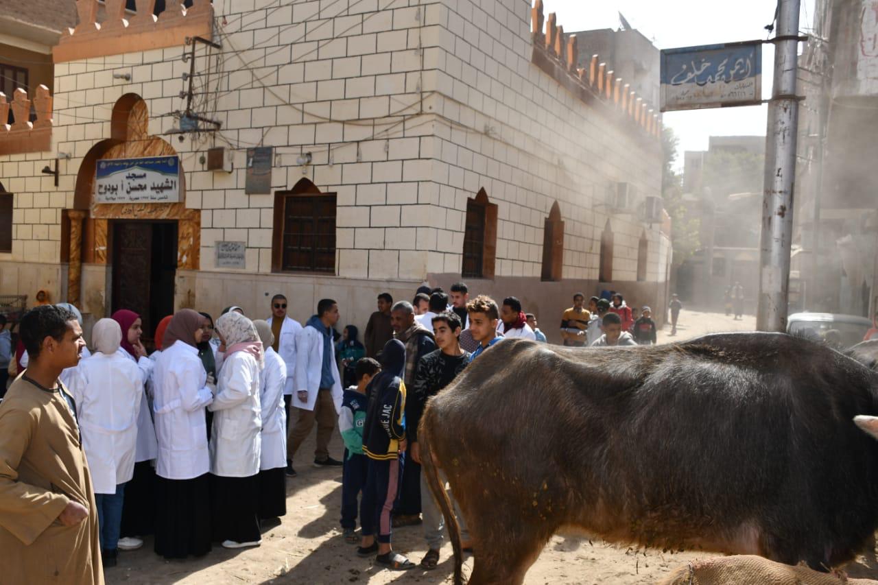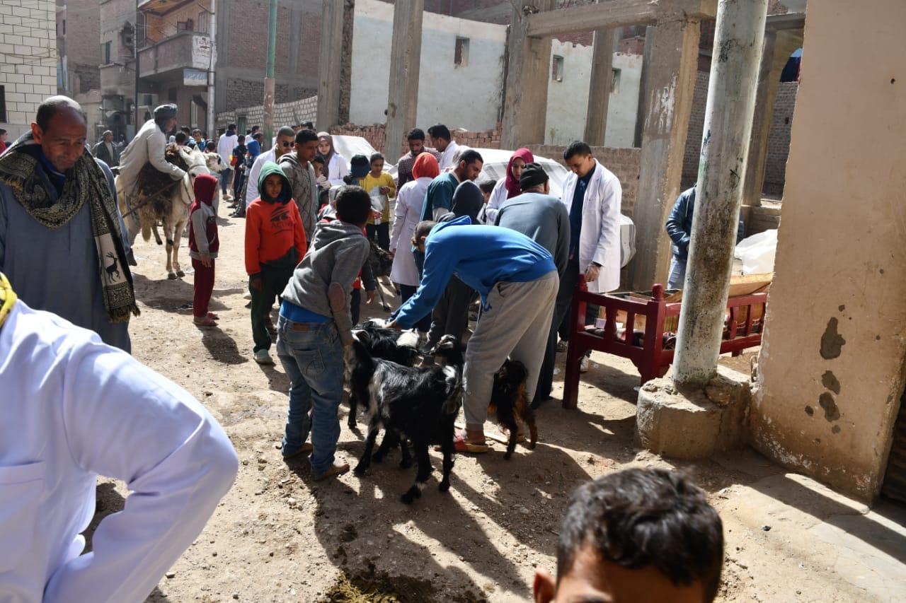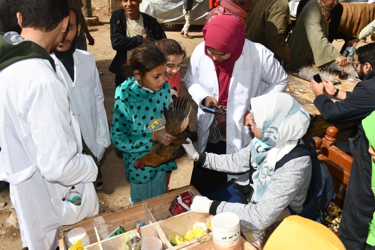 جامعة سوهاج تعالج 365 حالة بقافلتها البيطرية لقرية الحواويش بالمجان