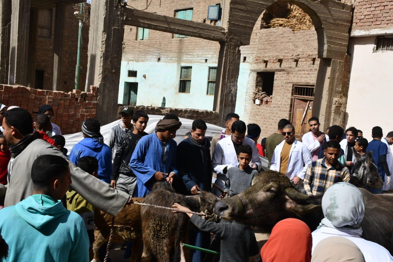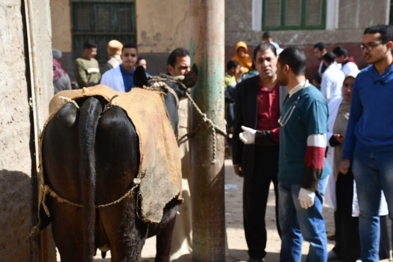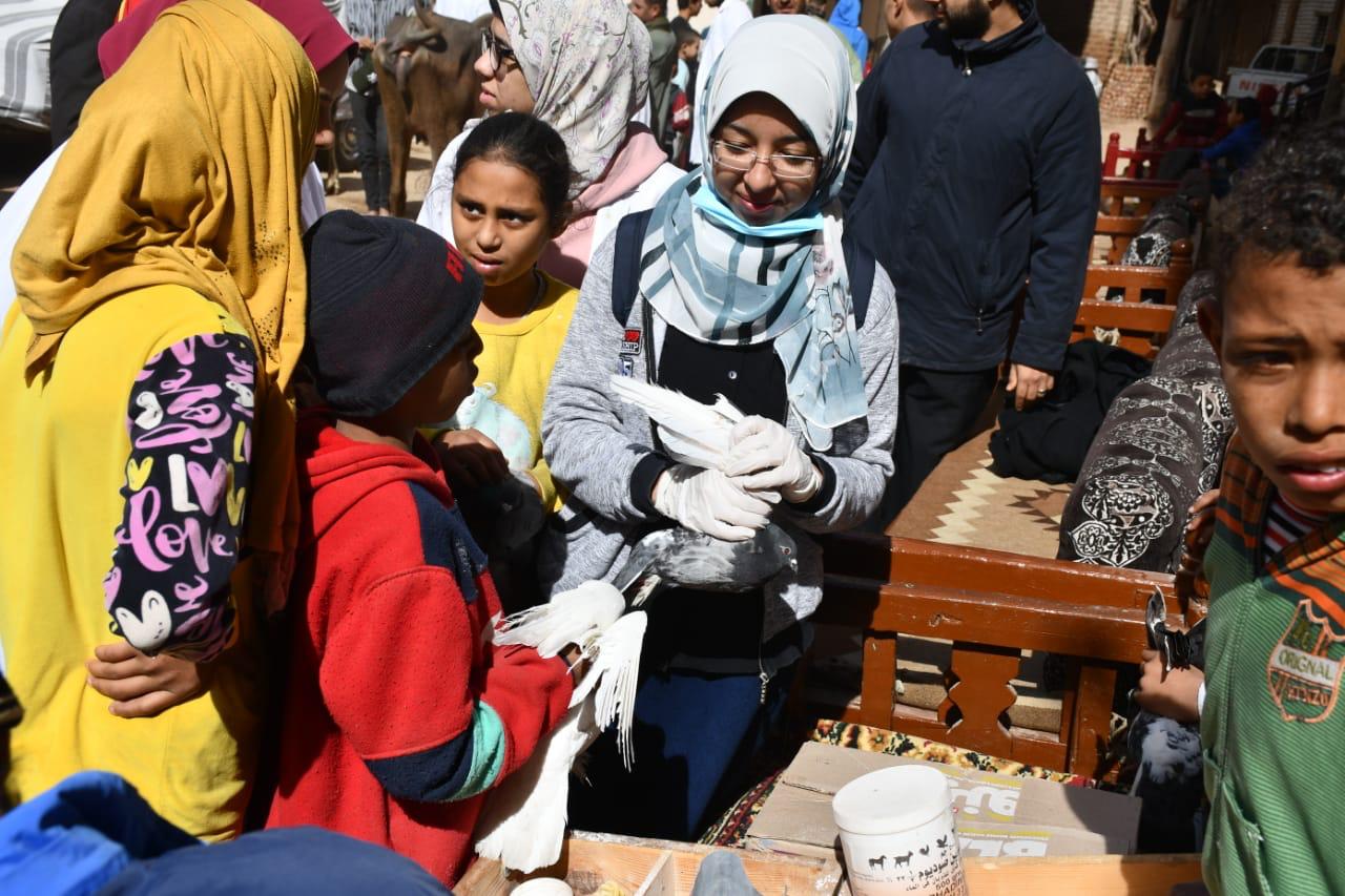 جامعة سوهاج تعالج 365 حالة بقافلتها البيطرية لقرية الحواويش بالمجان