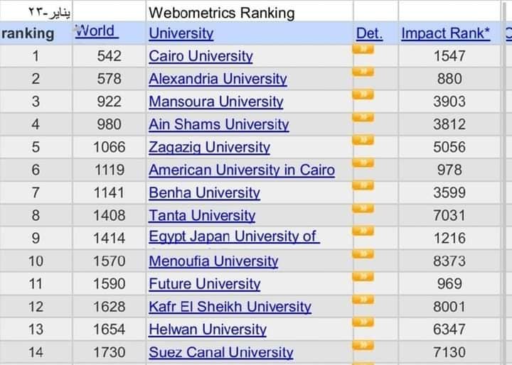 جامعة المنوفية ضمن أفضل الجامعات المصرية في تصنيف الجامعات الأسباني ويبومتركس