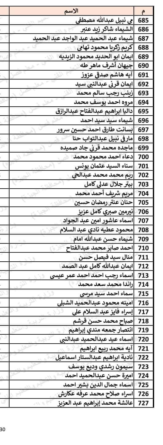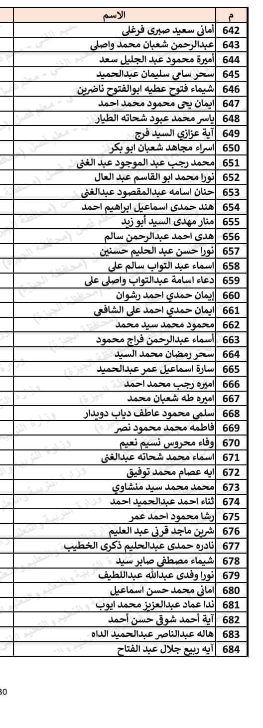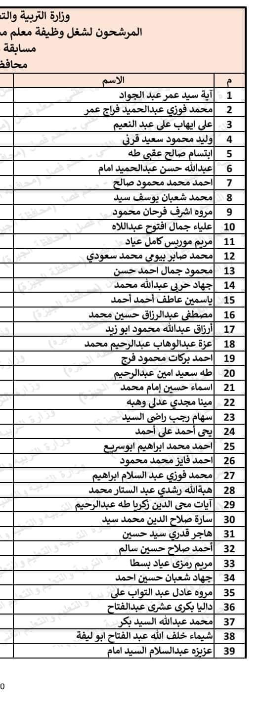 أعلنت محافظة الجيزة، عن الأسماء التى تم قبولها فى مسابقة الـ30 ألف معلم في وظيفة معلم فصل مساعد بمحافظة الجيزة.