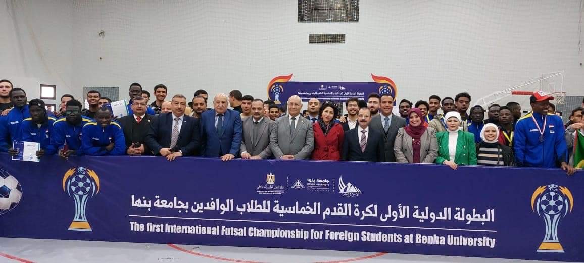 اختتمت منافسات البطولة الدولية لخماسي كرة القدم للطلاب الوافدين التي استضافتها جامعة بنها بالتنسيق مع الإدارة المركزية لشئون الطلاب الوافدين، برعاية الدكتور أيمن عاشور وزير التعليم العالي والبحث العلمي، وتحت إشراف قطاع الشئون الثقافية والبعثات، وذلك خلال الفترة من 14 - 16 فبراير الجاري، تحت شعار "ادرس في مصر".