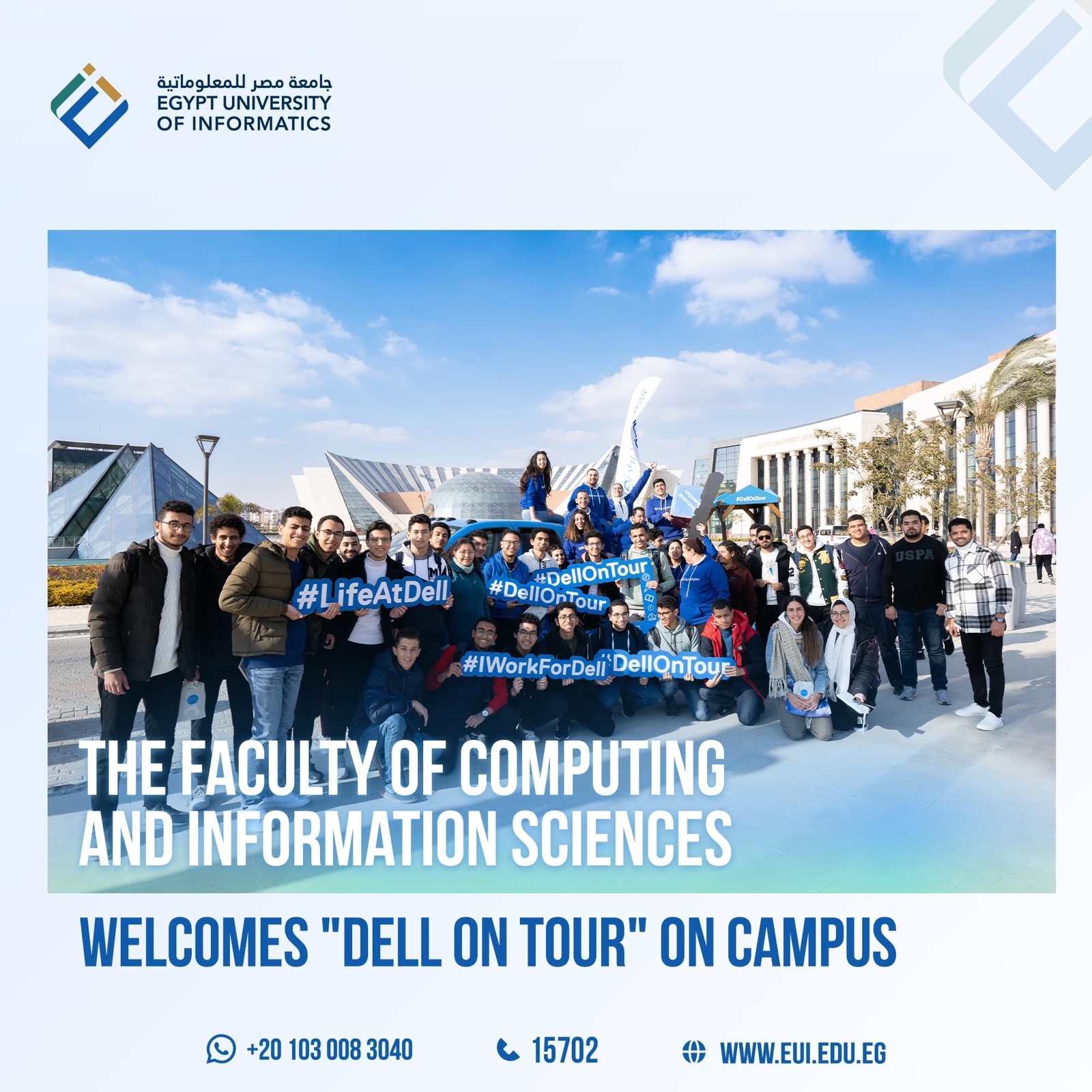 استقبلت كلية علوم الحاسب والمعلومات جامعة مصر للمعلوماتية، بمقرها في مدينة المعرفة بالعاصمة الإدارية الجديدة، شركه ديل - مصر (Dell-Egypt) ضمن فاعليات “Dell on Tour” والتي تزور من خلاله مجموعة من الجامعات، بهدف تعريف طلاب كليات الحاسب والمعلومات، والهندسة، بمجالات الشركة والعمل بها وفرص التدريب التى توفرها لهم بعد التخرج.