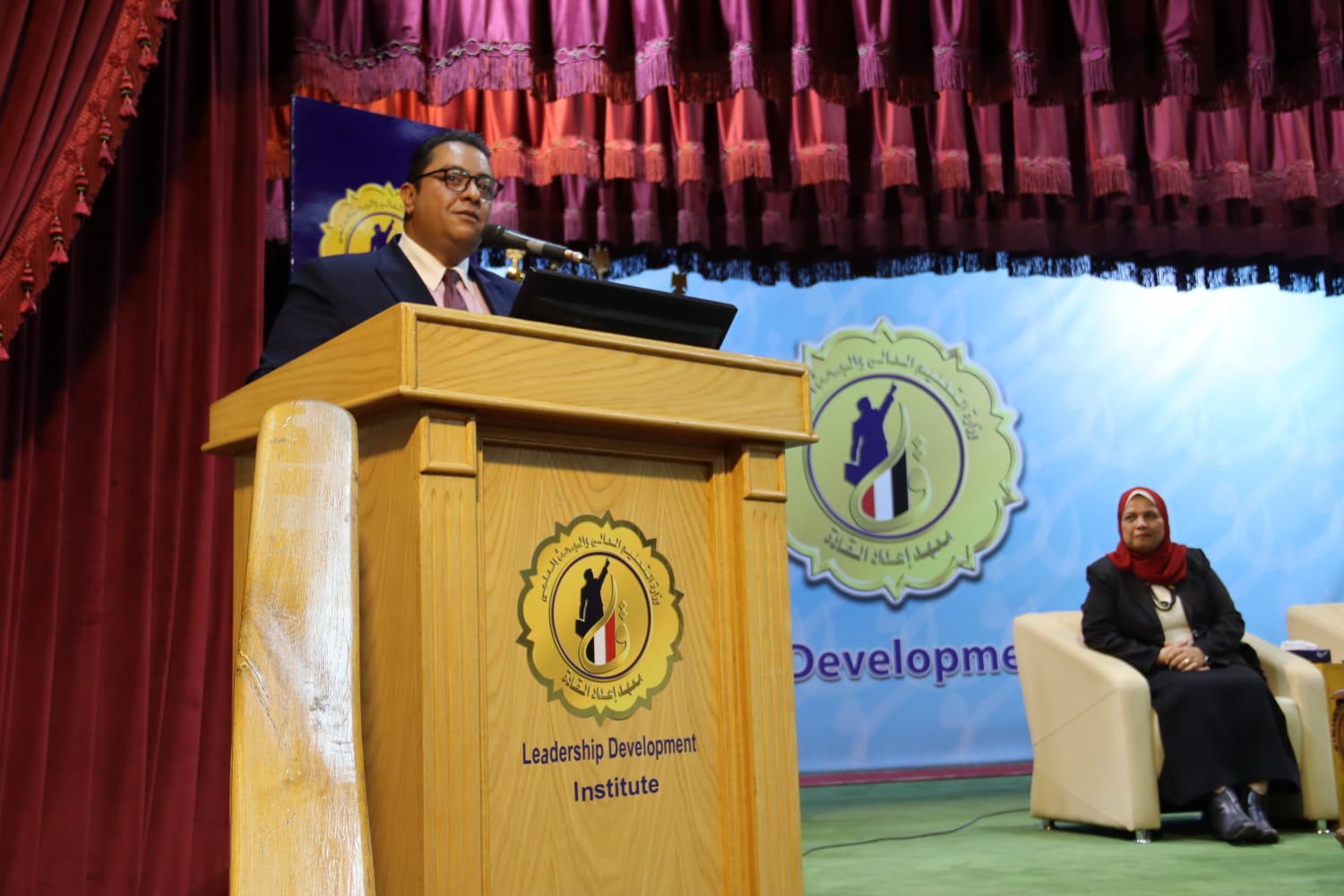 وفي بداية كلمته، نقل الدكتور كريم همام مدير معهد إعداد القادة، تحية الدكتور أيمن عاشور وزير التعليم العالي والبحث العلمي، مؤكدًا أن المعهد يسعى نحو بناء جيل من الفتيات القادرات على البناء والتطوير اللاتي يحملن على عاتقهن آمال وتطلعات وطننا ومستقبله المشرق، من خلال هذا البرنامج التدريبي الذي يسهم على تأهيلهن وإعدادهن ونشر الوعي بينهم واطلاعهن على كافة قضايا المجتمع.