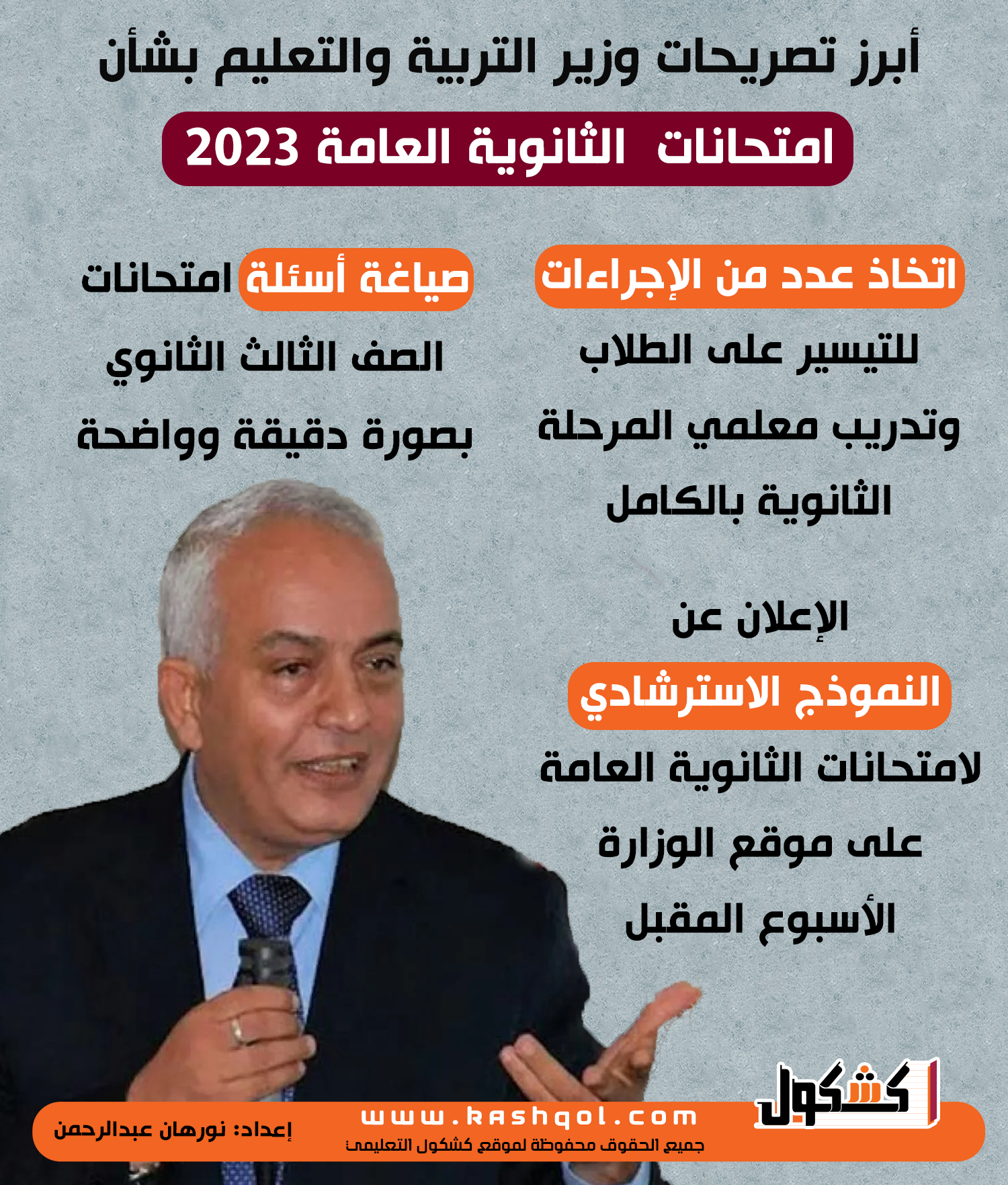 توجيه مهم من وزير التعليم بشأن أسئلة امتحانات الثانوية العامة 2023