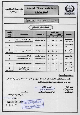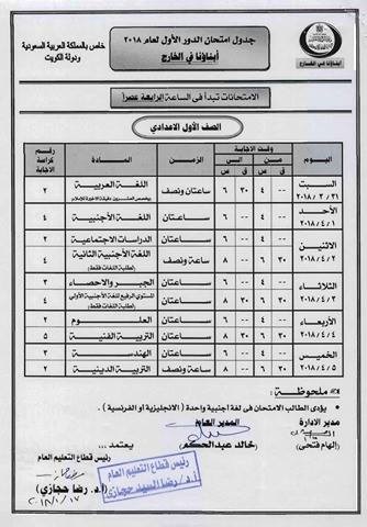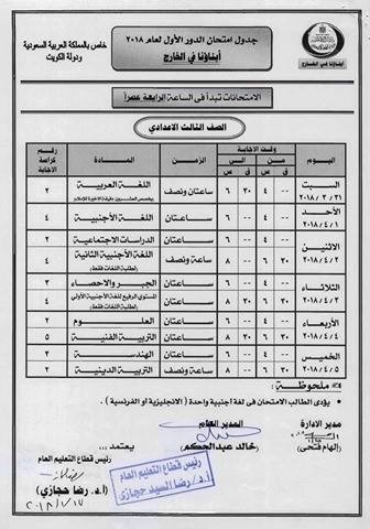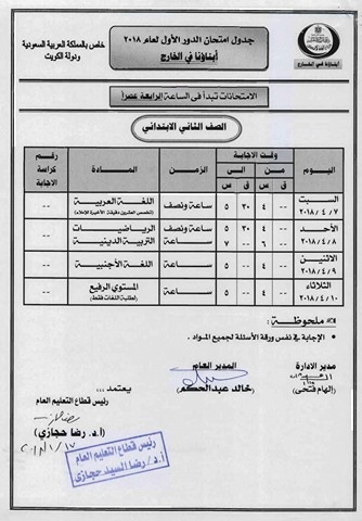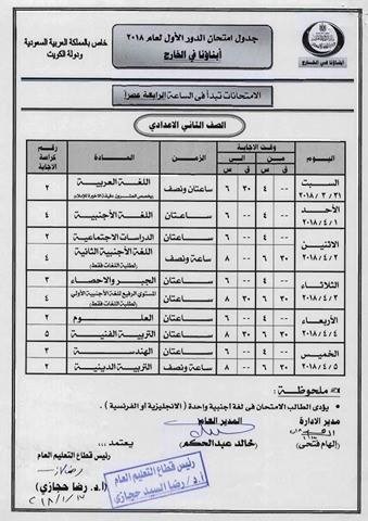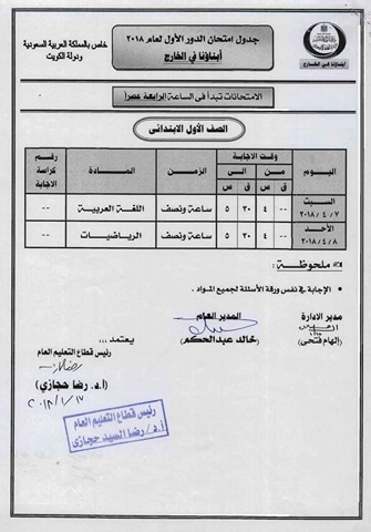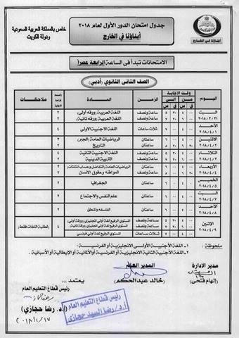 وتبدأ امتحانات الدور الأول اعتبارًا من السبت الموافق 31 مارس 2018، فيما تبدأ امتحانات الدور الثاني اعتبارًا من السبت الموافق 7 يوليو 2018.