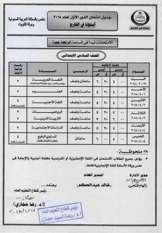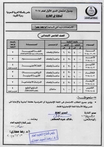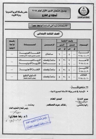 أعلنت وزارة التربية والتعليم، جداول امتحانات الطلاب المصريين بالخارج، بدءًا من الصف الاول الابتدائي وحتى الصف الثاني الثانوي.