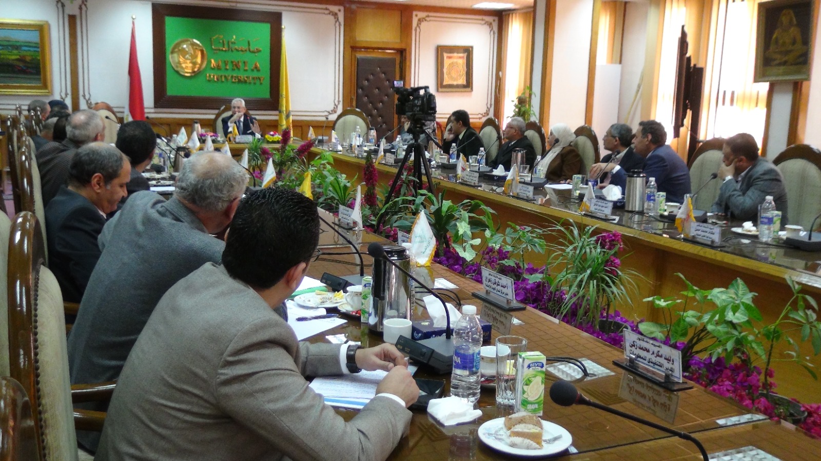 اجتمع مجلس جامعة المنيا اجتماعه الدوري برئاسة الدكتور عصام الدين صادق فرحات القائم بأعمال رئيس الجامعة، وبحضور عمداء الكليات، ومدير مركز ضمان الجودة والاعتماد، والمدير التنفيذي للمعلومات، والمستشار القانوني وأمين عام الجامعة أعضاء المجلس، ورئيس اتحاد طلاب الجامعة.