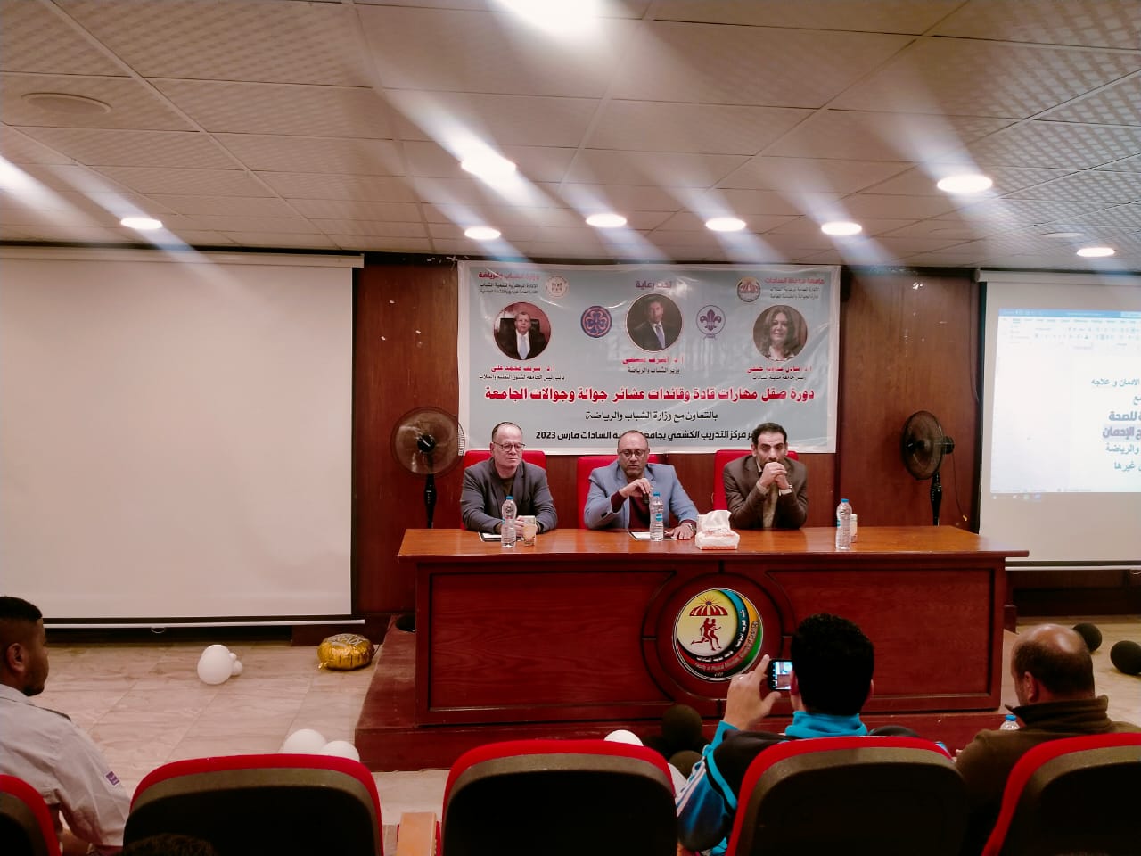 جاء ذلك تحت رعاية الدكتور أشرف صبحي، وزير الشباب والرياضة، والدكتورة شادن معاوية، رئيس جامعة مدينة السادات، والدكتور شريف محمد علي نائب رئيس الجامعه لشئون التعليم والطلاب، وإشراف عام الدكتور أحمد عزب، عميد كلية التربية الرياضية، والدكتور إبراهيم الكفراوي منسق عام الأنشطة الطلابية، وهيثم قنديل، مدير عام رعايه الطلاب، وإشراف الدكتور السيد بدوي مدير إدارة الجوالة والخدمة العامة، وبمشاركة نخبة متميزة من قادة الحركة الكشفية القائد عادل إبراهيم محمد زاهر، نائب رئيس اللجنة الكشفية العربية لتنمية القيادات بالمنظمة الكشفية العربية،