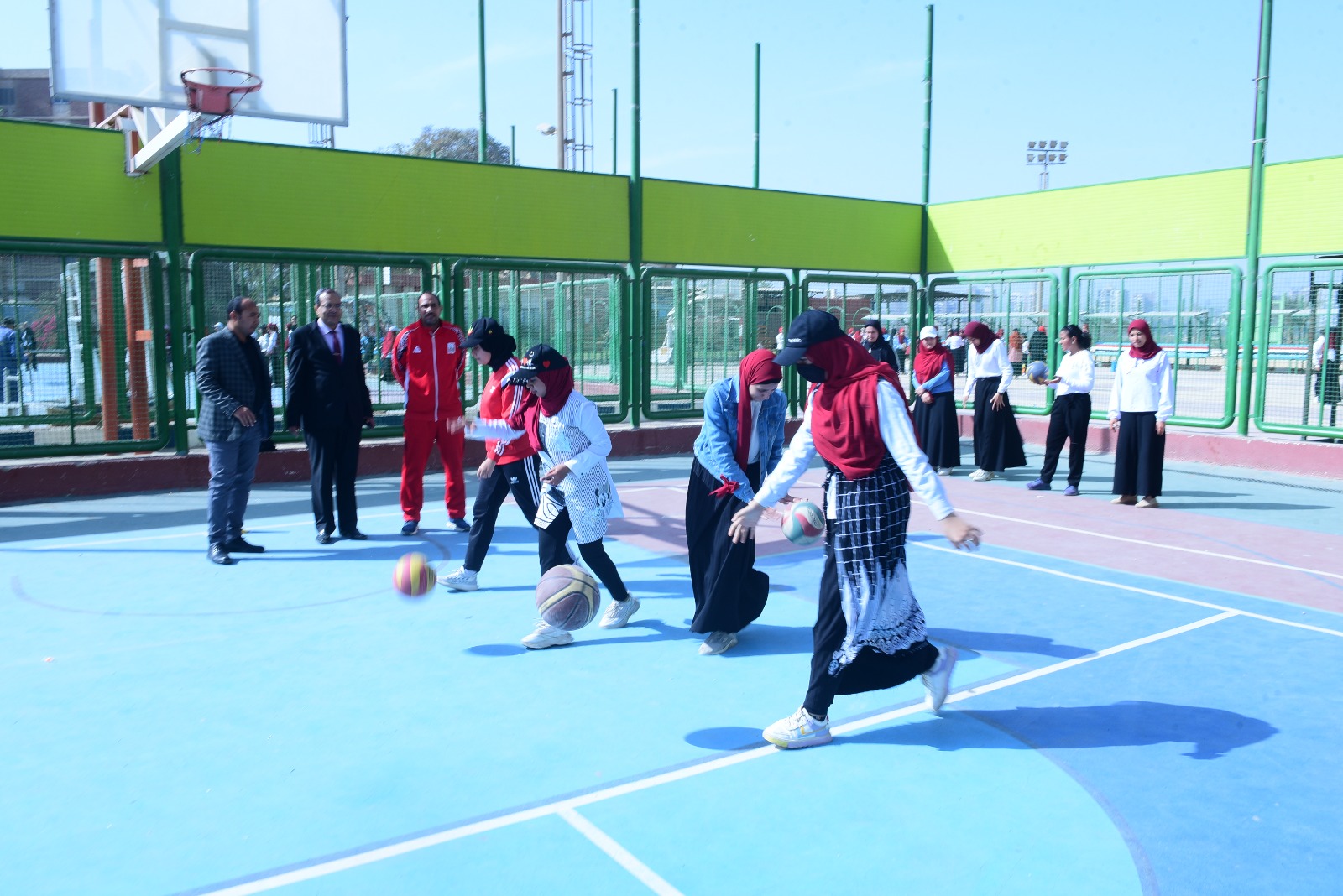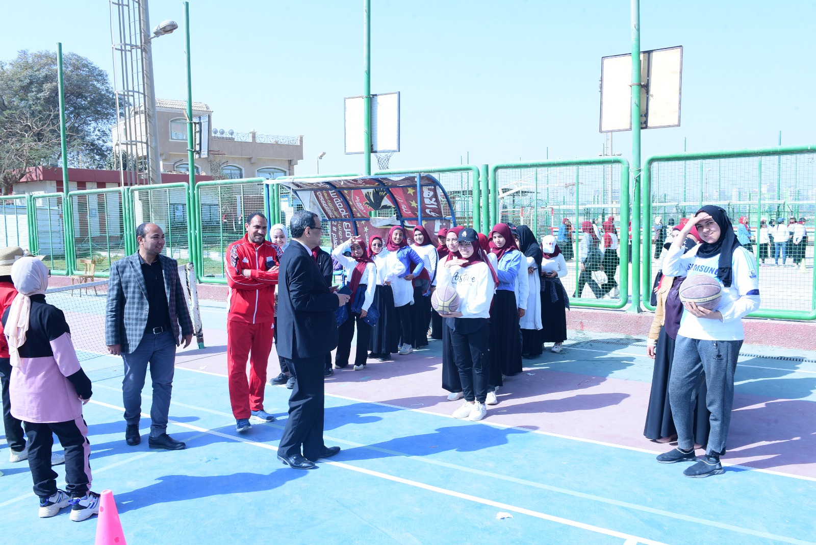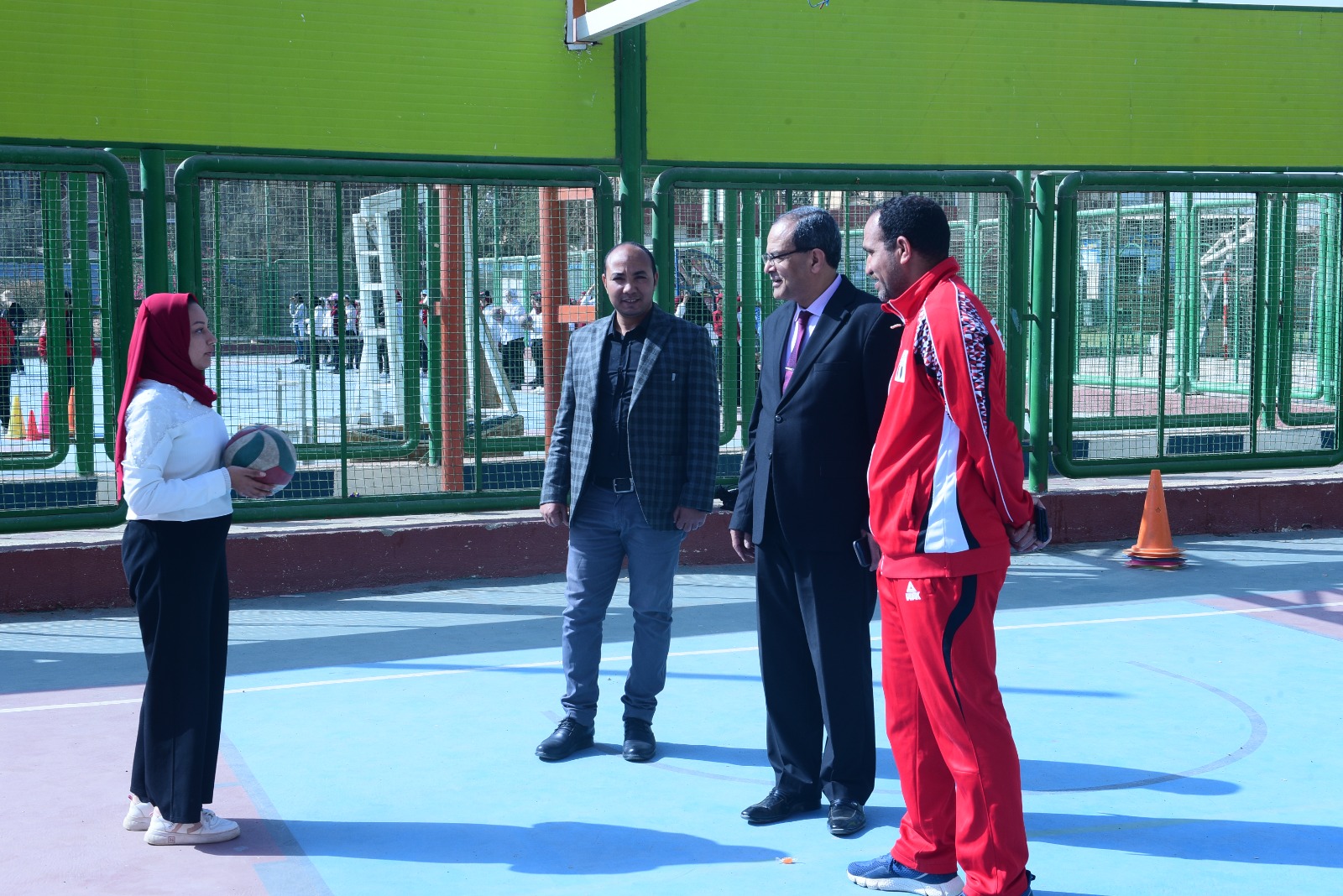 تفقد اليوم، الدكتور مصطفى عبدالخالق رئيس جامعة سوهاج، التدريبات العملية لمقرر اللياقة البدنية والصحة لطلاب كلية التربية الرياضبة جامعة سوهاج، يصاحبه الدكتور أحمد عبدالله القائم بعمل عميد كلية التربية الرياضبة جامعة سوهاج، والدكتور ممدوح محمد السيد وكيل الكلية لشئون خدمة المجتمع وتنمية البيئة، وذلك بملاعب المدينة الجامعية للطالبات بالمقر القديم للجامعة.