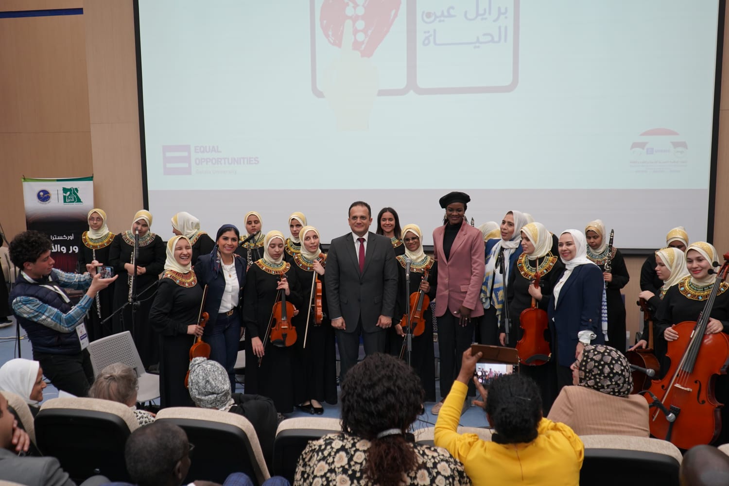 جاء ذلك بحضور الدكتورة رنا زيدان أمين عام جامعة الجلالة، والدكتورة دينا عرابي، مدير وحدة تكافؤ الفرص، وبرنامج الإنتاج الإعلامي بالجامعة، والدكتور خالد الأتربي، رئيس القناة الفضائية المصرية.