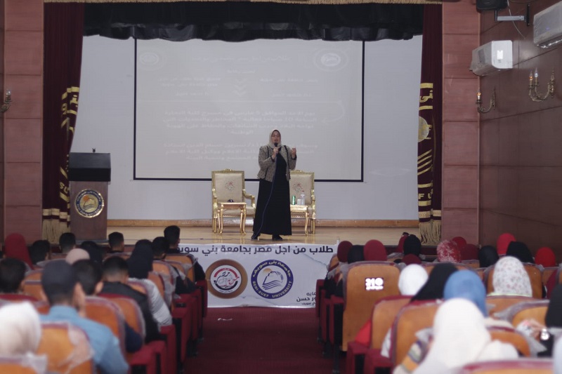 نظم طلاب من أجل مصر جامعة بني سويف، فعالية عن المخاطر والتحديات التي تواجه البلاد وحرب الشائعات والحفاظ على الهوية الوطنية، تحت رعاية الدكتور منصور حسن رئيس جامعة بني سويف، وتحت إشراف الدكتور أحمد فاروق المنسق العام لطلاب من أجل مصر، والتي حاضرت بها الدكتورة نسرين حسام الدين وكيل كلية الإعلام جامعة بني سويف لشئون خدمة المجتمع وتنمية البيئة، وذلك بمسرح كلية التجارة وسط حضور لافت من الطلاب.