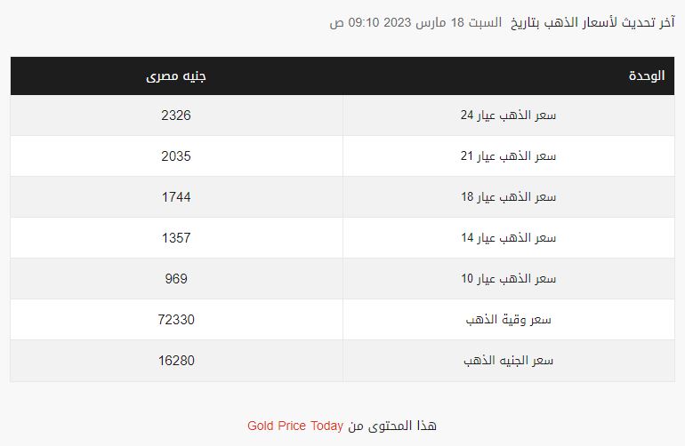 واصل سعر الذهب في بداية تعاملات اليوم السبت في مصر 18 مارس 2023، الارتفاع بقيمة 5 جنيهات في الجرام، مقارنة بمستواه في تعاملات مساء أمس الجمعة.