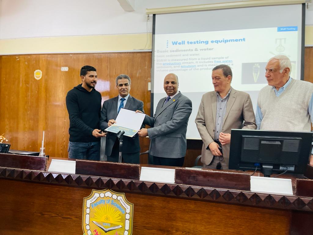 وأضاف الدكتور حازم المشنب عميد كلية العلوم جامعة سوهاج، أن الندوة تناولت التعريف بأساسيات أنظمة البترول، وطرق الإنتاجية للبترول وكيفية التعامل مع الإنتاج، التعريف بأساسيات اختبارات الآبار وعمل التحليلات اللازمة للتعرف على الخزان والتأكد من إنتاجيته وجودة الآبار، إلى جانب كيفية عمل تجديد وتنظيف للآبار القديمة وحساب إنتاجية الآبار الجديدة، موضحًا أنه حاضر بالندوة المهندس هشام إسماعيل مهندس اختبارات الآبار بشركة اكسبروجروب Expro Group.