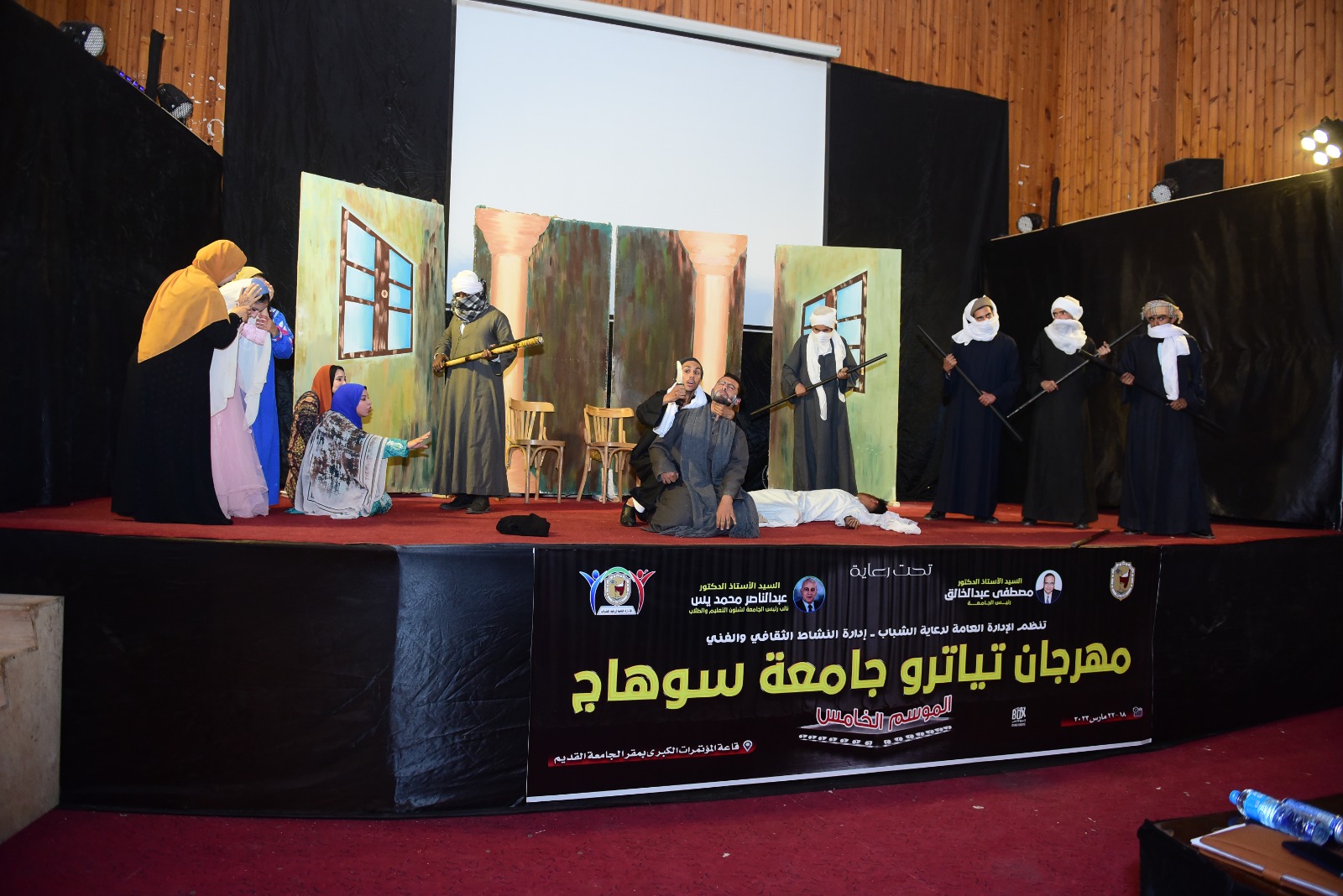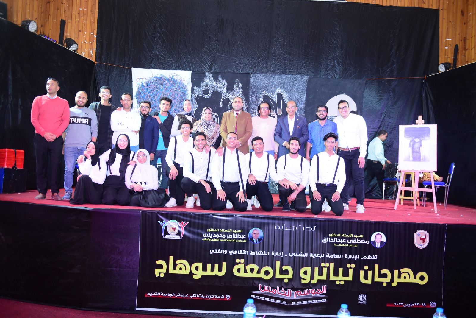 انطلقت بـ"جامعة سوهاج" فعاليات المهرجان الخامس "تياترو" للعروض المسرحية، والذي تنظمه إدارة النشاط الثقافي والفني بالإدارة العامة لرعاية الشباب المركزية، على مدار ٥ أيام، بمشاركة ٢٦٠ طالب وطالبة، يمثلون ١٥ كلية من كليات الجامعة، وذلك على مسرح قاعة المؤتمرات الكبرى بالحرم الجامعي القديم.