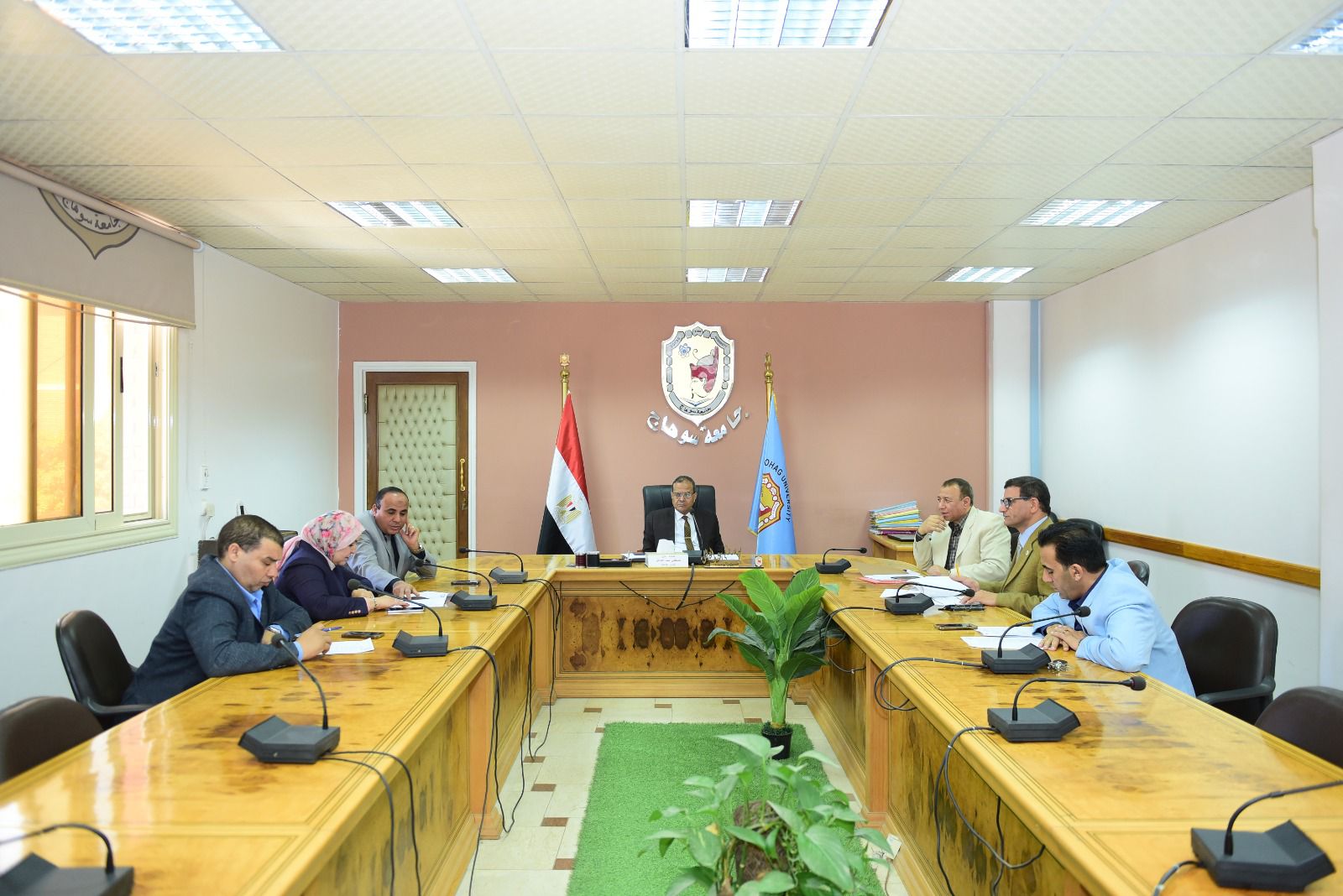 رئيس جامعة سوهاج يعقد اجتماعًا استعدادًا للمشاركة في مسابقة أفضل جامعة صديقة للبيئة
