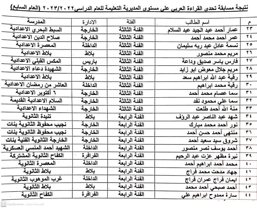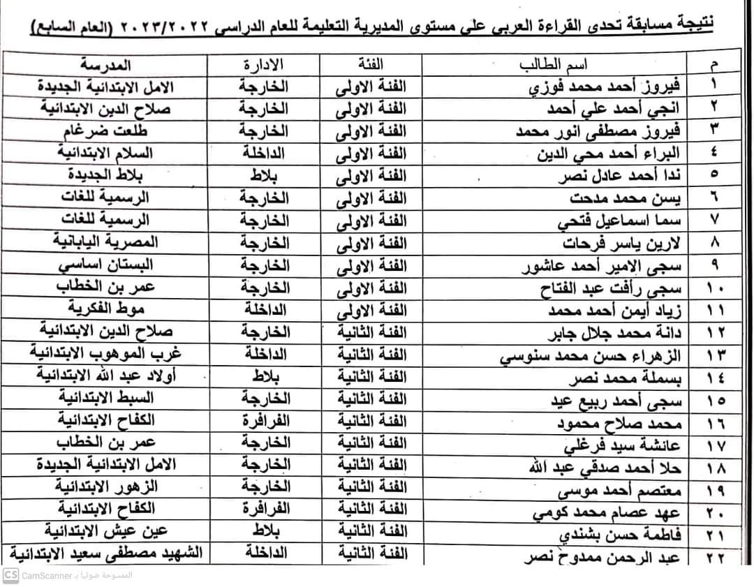 اعتمد وصفى حسن القائم بتسيير أعمال مديرية التربية والتعليم بالقاهرة، نتائج مسابقة تحدى القراءة العربى للعام الدراسى 2022- 2023 والتى أسفرت عن فوز 44 طالب وطالبة على مستوى المديرية.