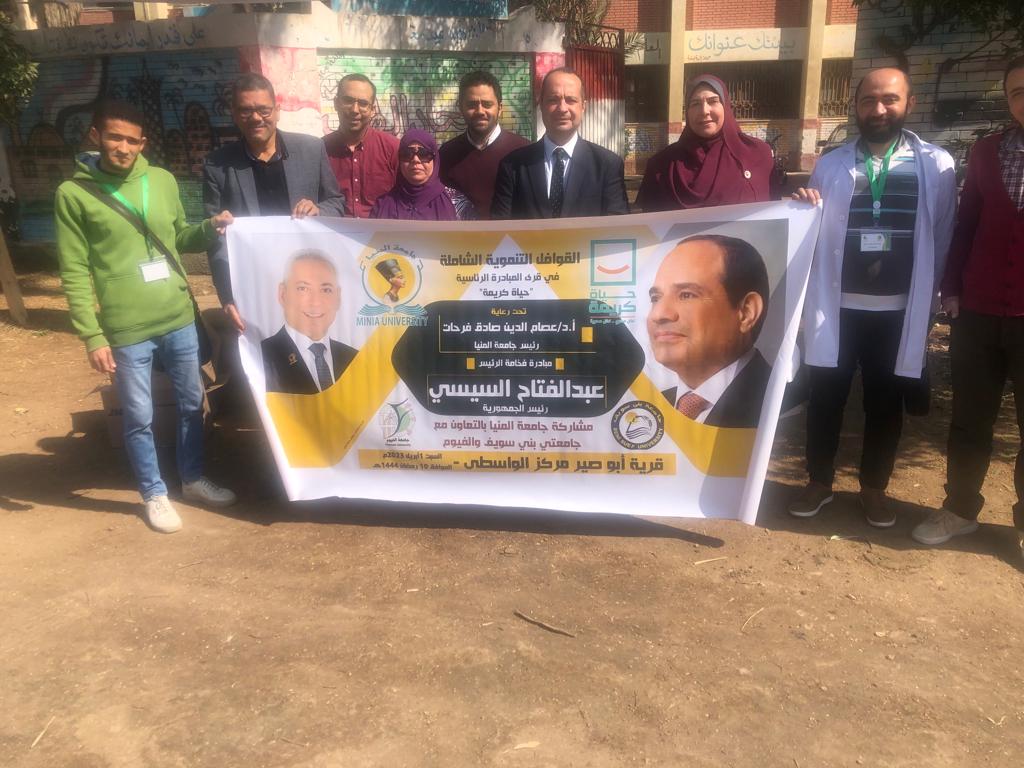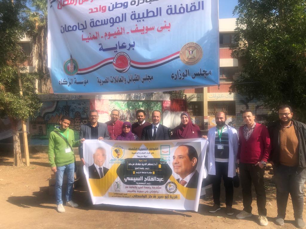شاركت جامعة المنيا بفريق طبي متخصص في تنفيذ التدخلات والرعاية الطبية بالقافلة الطبية المتكاملة لقرية أبو صير بمركز الواسطى التابع لمحافظة بني سويف، حيث أُطلقت القافلة بالتعاون مع اللجنة الطبية العليا والاستغاثات بمجلس الوزراء، بمشاركة مجلس القبائل والعائلات المصرية ضمن فعاليات مبادرة "وطن واحد"، وشارك بها جامعتي "بني سويف والفيوم".
