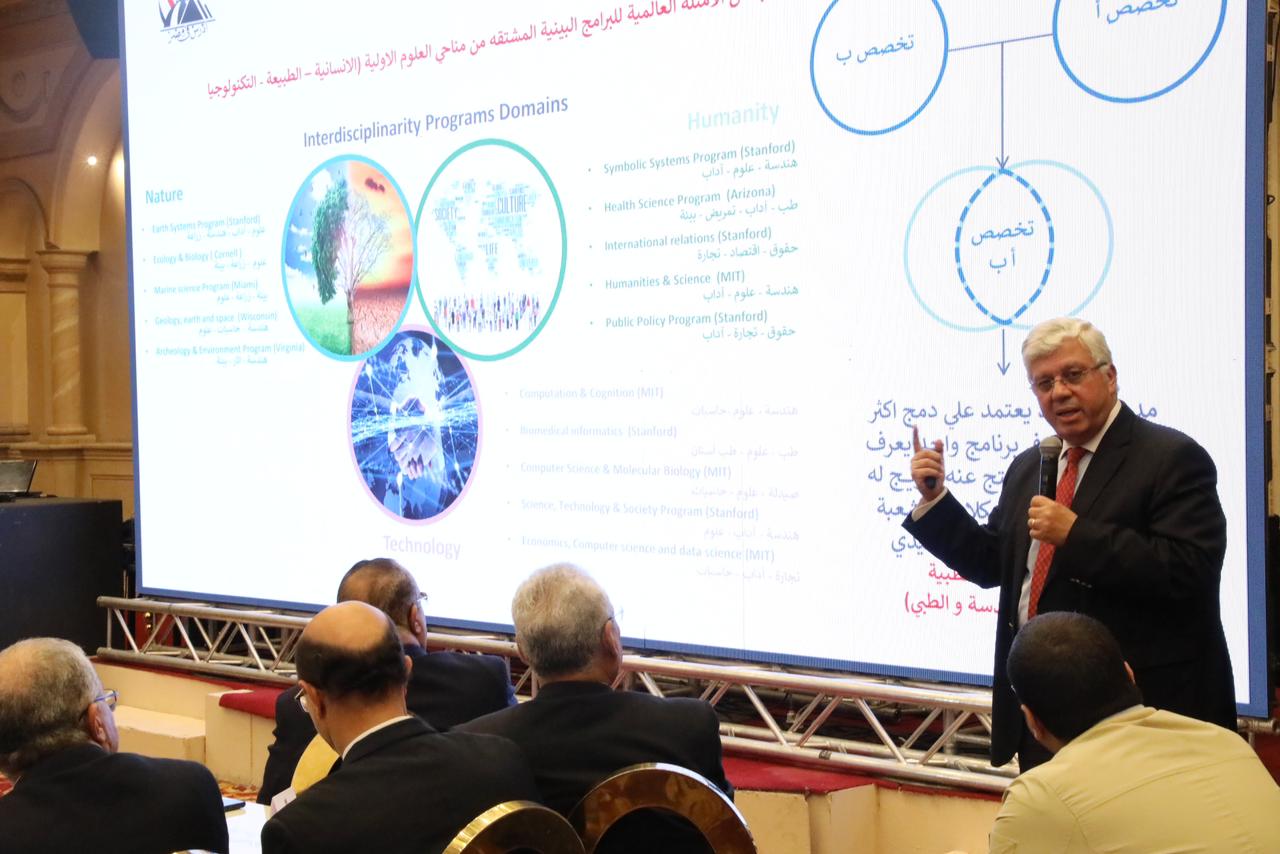 كما تناول وزير التعليم العالي والبحث العلمي، مجموعة من البرامج البينية والتي تجمع بين التخصصات بعضها ببعض والتي تدرس بالجامعات المصرية، وبالشراكة مع الجامعات الدولية، والتي تمنح الخريج شهادة مزدوجة من الجامعة المصرية ونظيرتها الأجنبية.