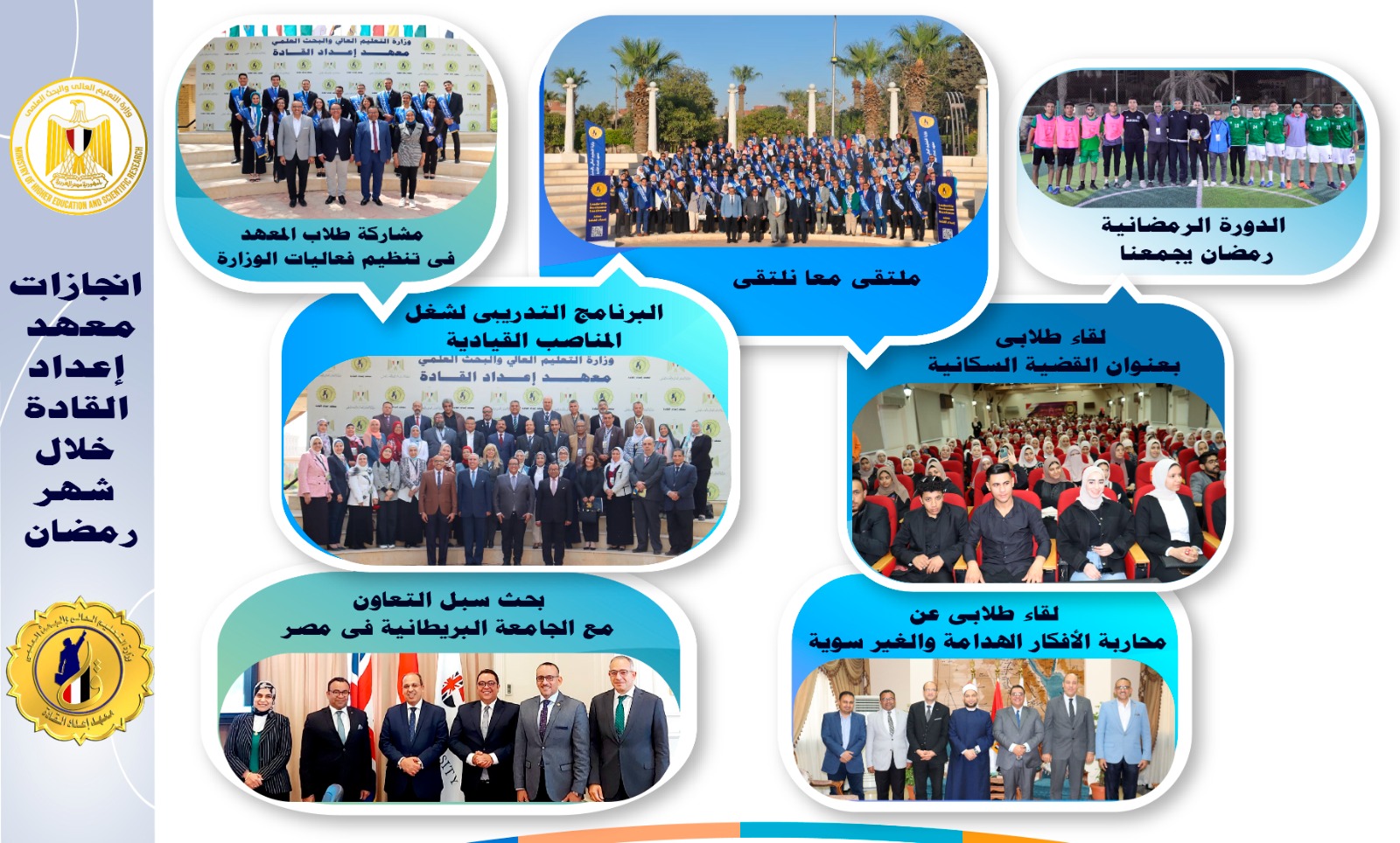 نظم معهد إعداد القادة بوزارة التعليم العالي والبحث العلمي تحت رعاية الدكتور أيمن عاشور وزير التعليم العالي والبحث العلمي، وقيادة الدكتور كريم همام مدير معهد إعداد القادة، العديد من الفعاليات خلال شهر رمضان المبارك، وذلك استكمالا للدور التوعوي الذي يقوم به المعهد في الاستثمار في عقول شباب الجامعات والمعاهد المصرية والعمل على بناء الوعي بالقضايا المختلفة حول مواجهة الأفكار المغلوطة والغير سوية، والتوعية بالقضايا التي تهم الشباب في مجال تنظيم الأسرة والصحة الانجابية والقضاء على المشكلة السكانية.