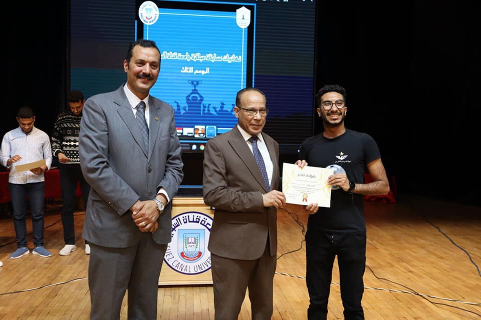 وقدم نائب رئيس الجامعة لشئون التعليم والطلاب شهادات تقدير للطلاب المتميزين في المسابقة وهم الطالب محمد شناوي كلية التجارة، والطالب عمر عبدالعزيز كلية الطب البشري، والطالب أحمد الهلباوي كلية الزراعة، والطالب أحمد وائل كلية الحاسبات والمعلومات، والطالب عبدالرحمن خطاب كلية الهندسة.