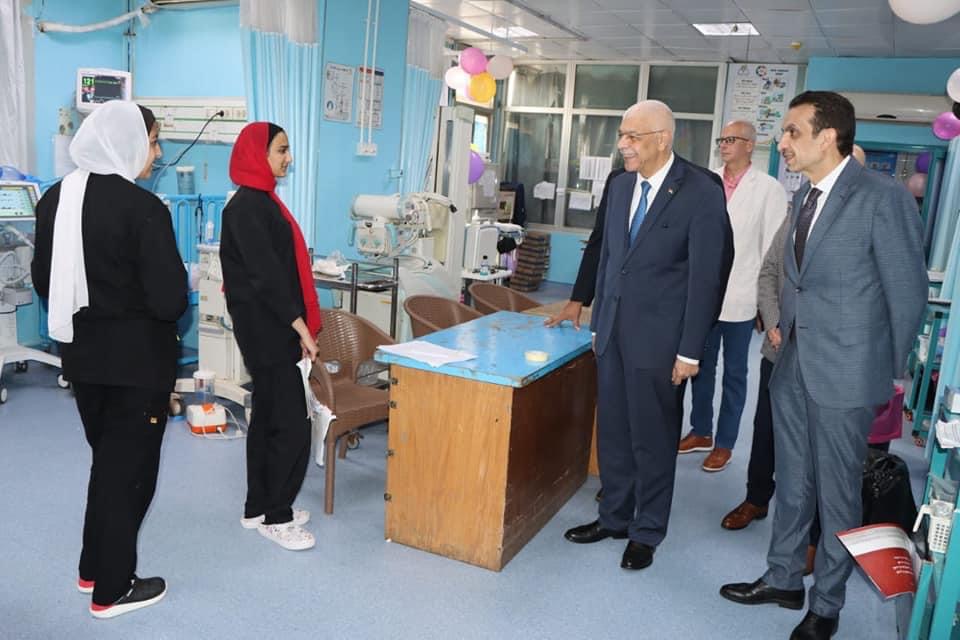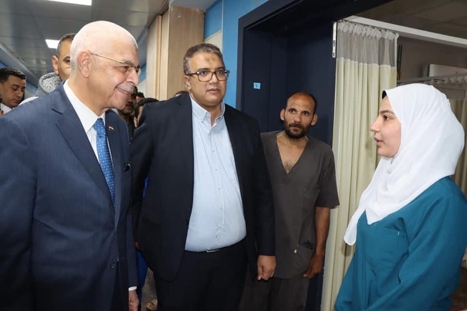 حيث تفقد رئيس الجامعة جميع الأقسام والاستقبال وغرف العنايات المركزة وغرف المرضى وتابع تقارير المرضى المتواجدين بالأقسام الداخلية لإستكمال العلاج، مقدمًا لهم التهنئة بالعيد، متمنيًا لهم الشفاء العاجل.