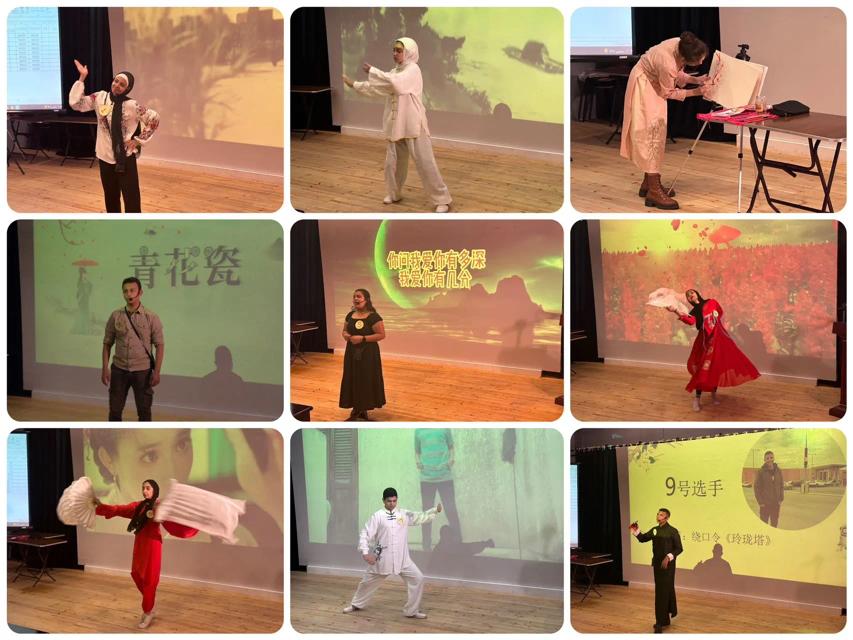وقام المتنافسون من طلاب المرحلة الثانوية وجميعهم من مدرسة الصداقة المصرية الصينية بالقاهرة، بالتعريف بأنفسهم وإلقاء كلمات وعرض أحد أشكال الفن الصيني التقليدي كالرسم والغناء والرقص الشعبي الصيني، حيث تعتبر مسابقة "جسر اللغة الصينية" من المسابقات العالمية التي يسافر إليها الطلاب من جميع أنحاء العالم لتمثيل بلادهم في النهائيات وتعقد سنويًا في الصين.